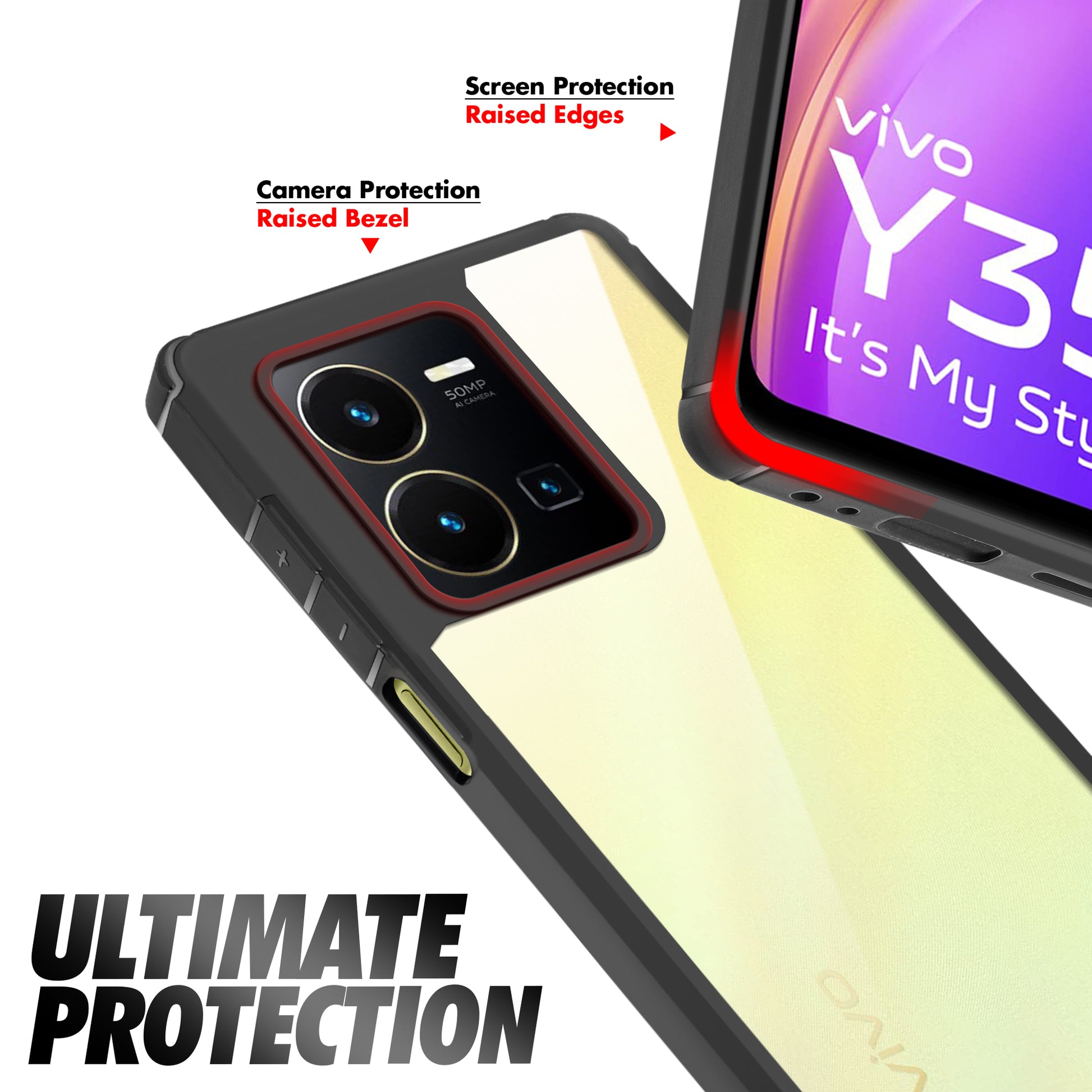 Silicone Border Transparent Back Cover for Vivo Y35