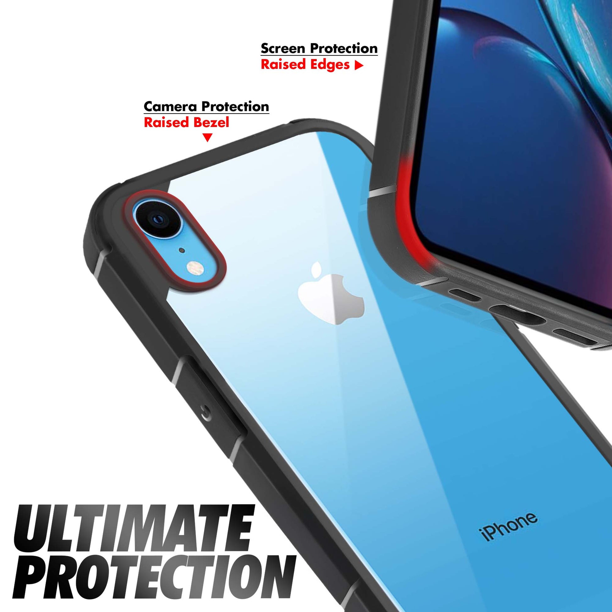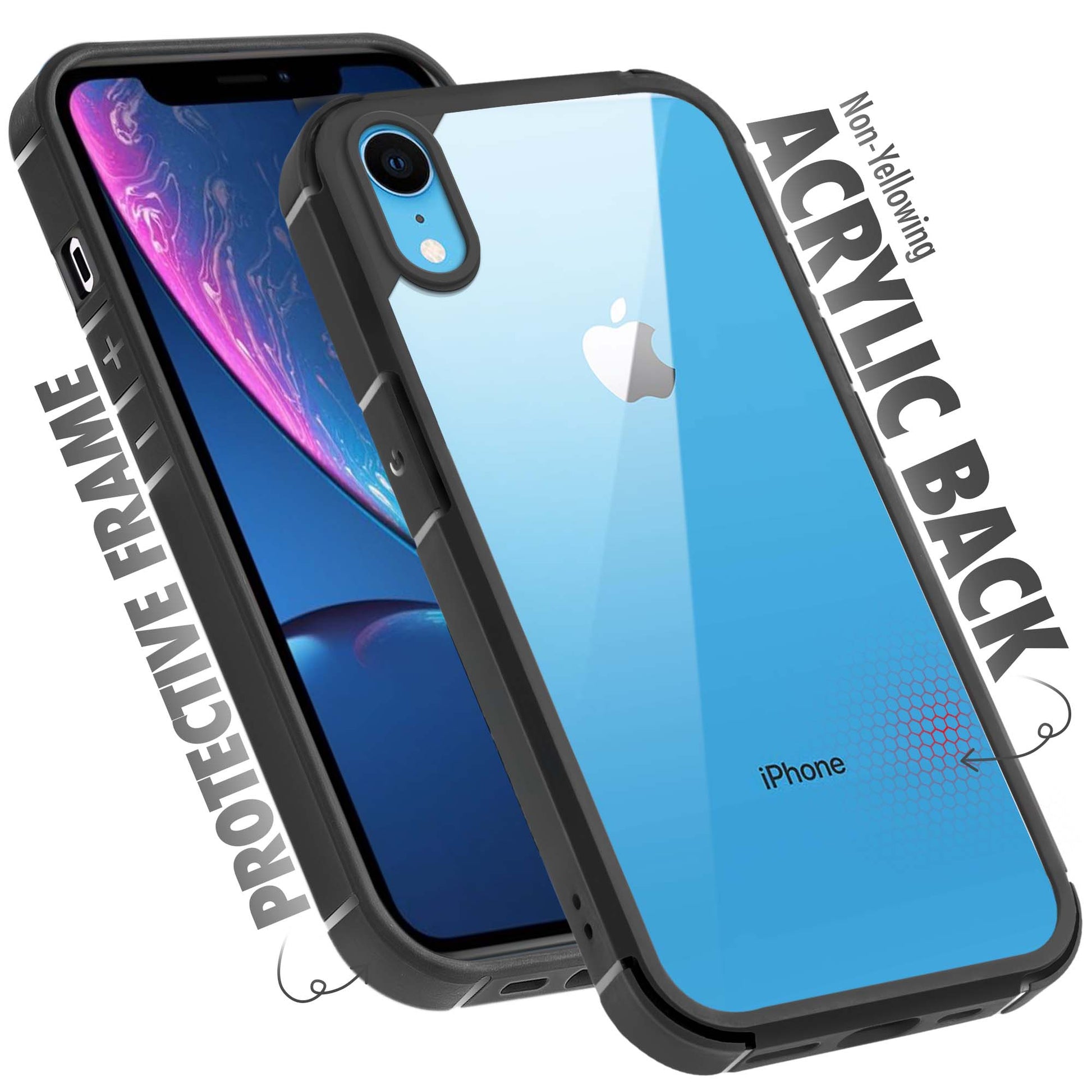 Silicone Frame Transparent Hard Back Cover for Apple iPhone XR