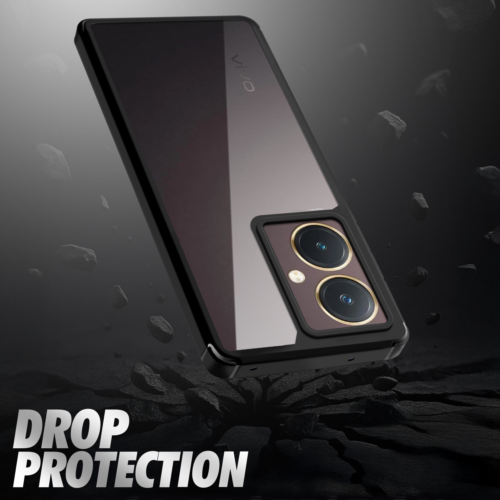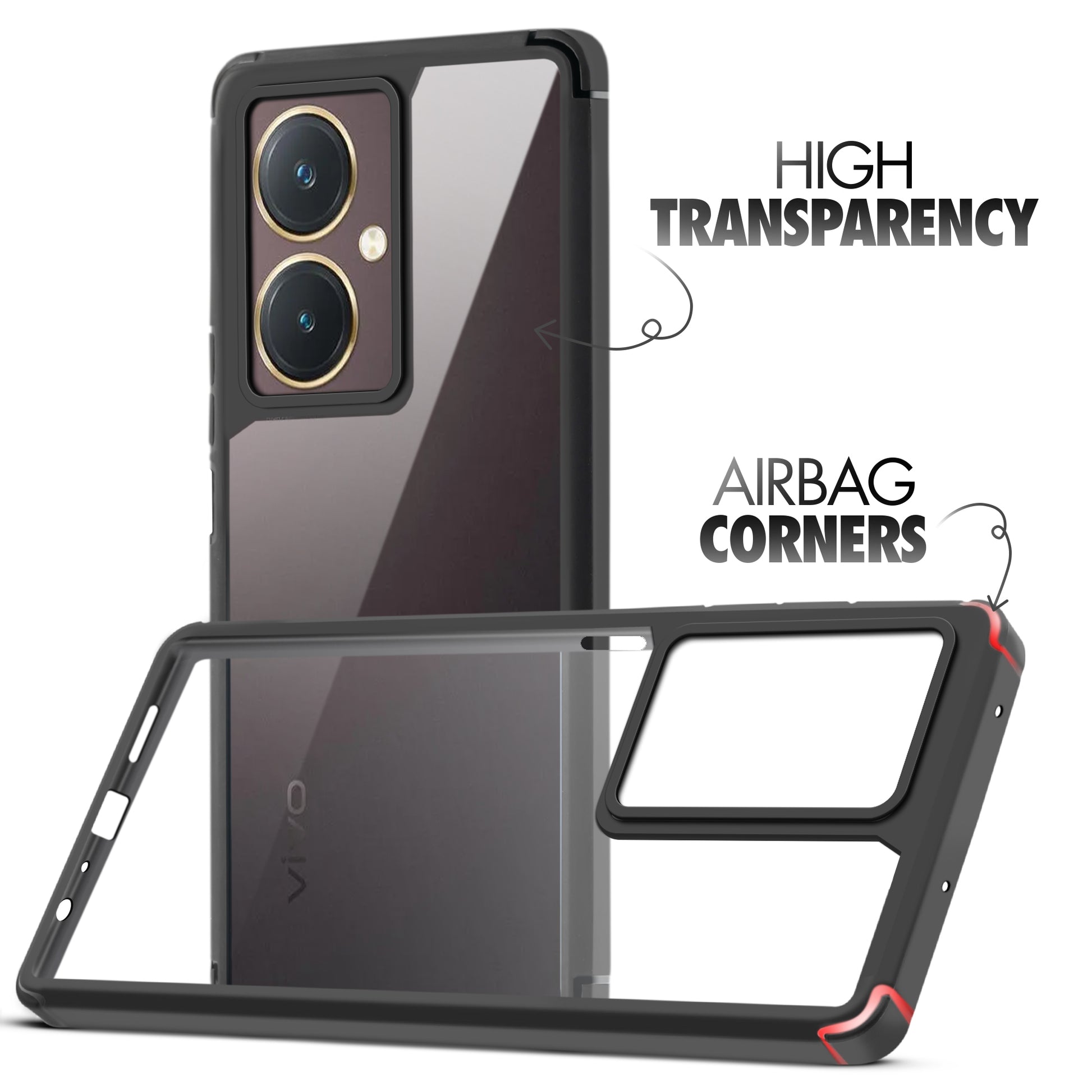 Silicone Frame Transparent Hard Back Cover for Vivo Y27 4G