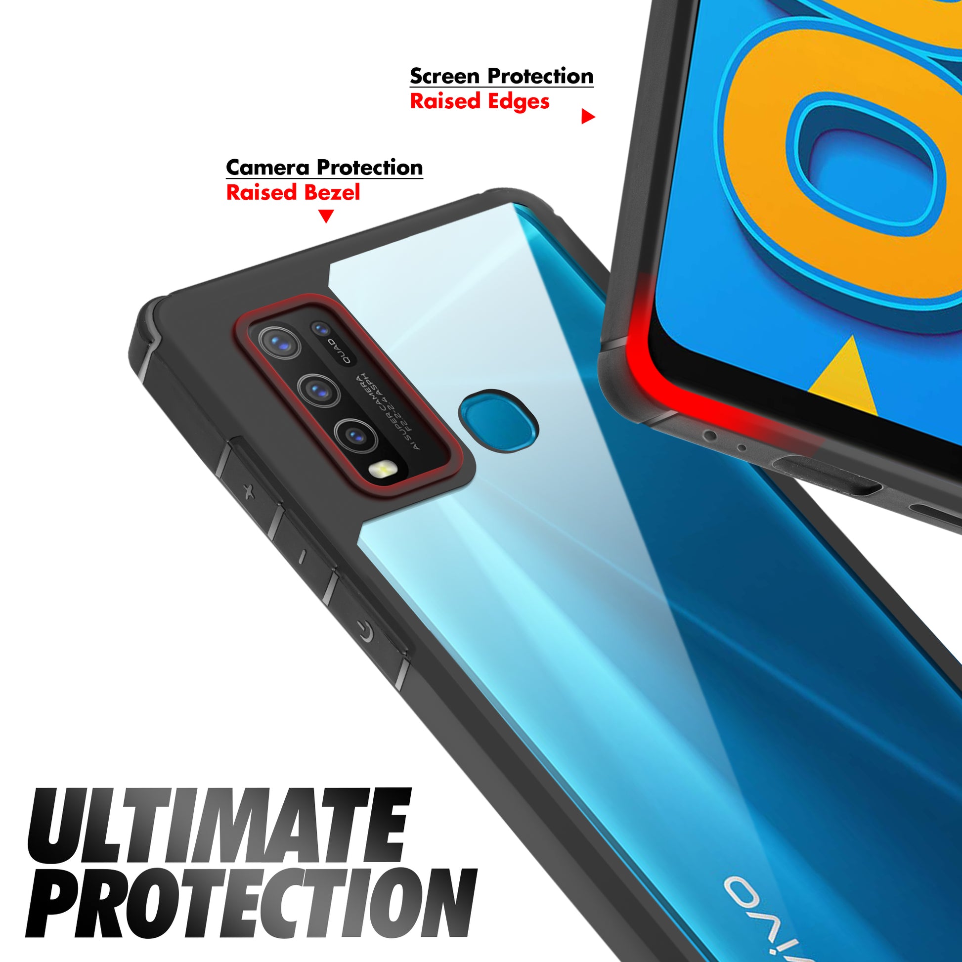 Silicone Frame Transparent Hard Back Cover for Vivo Y30