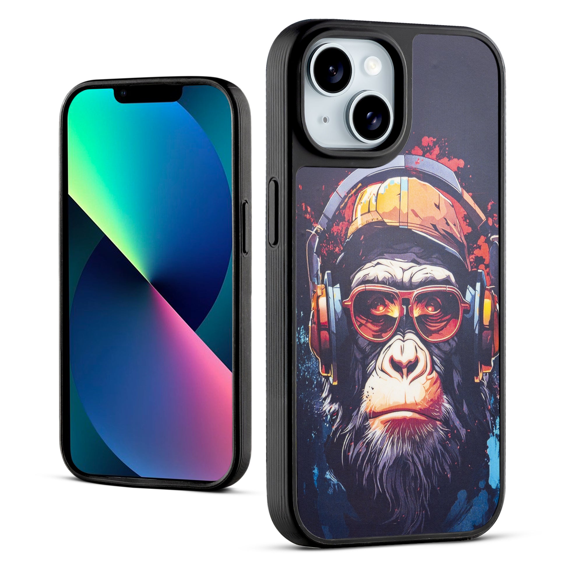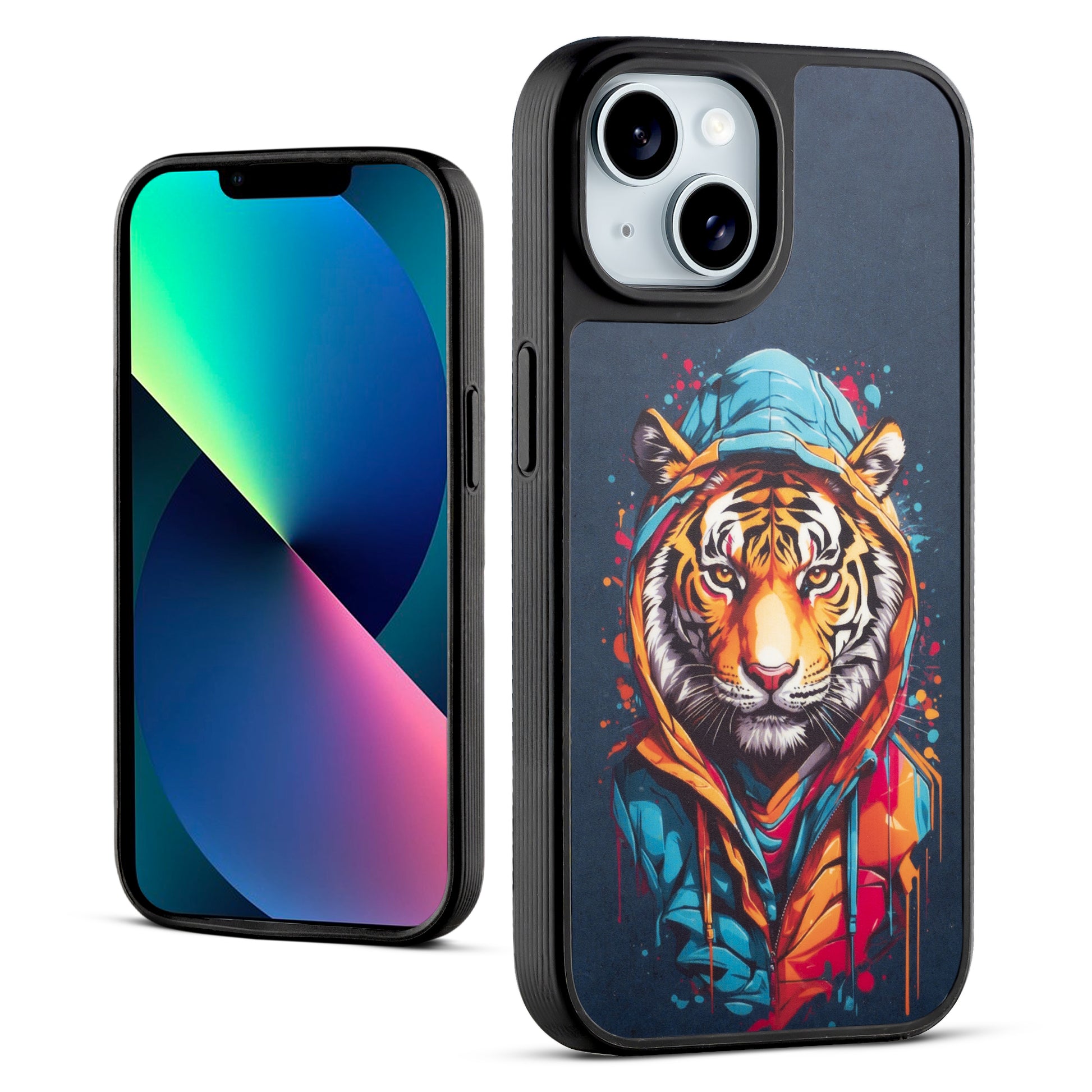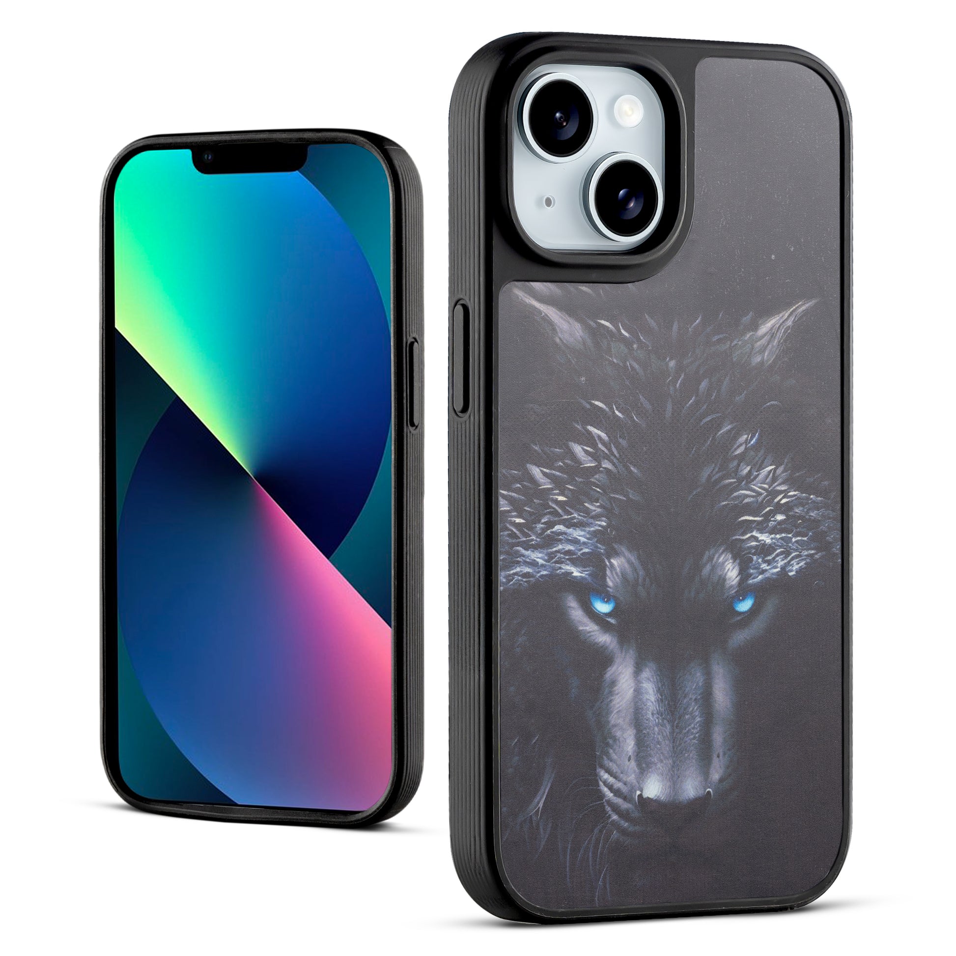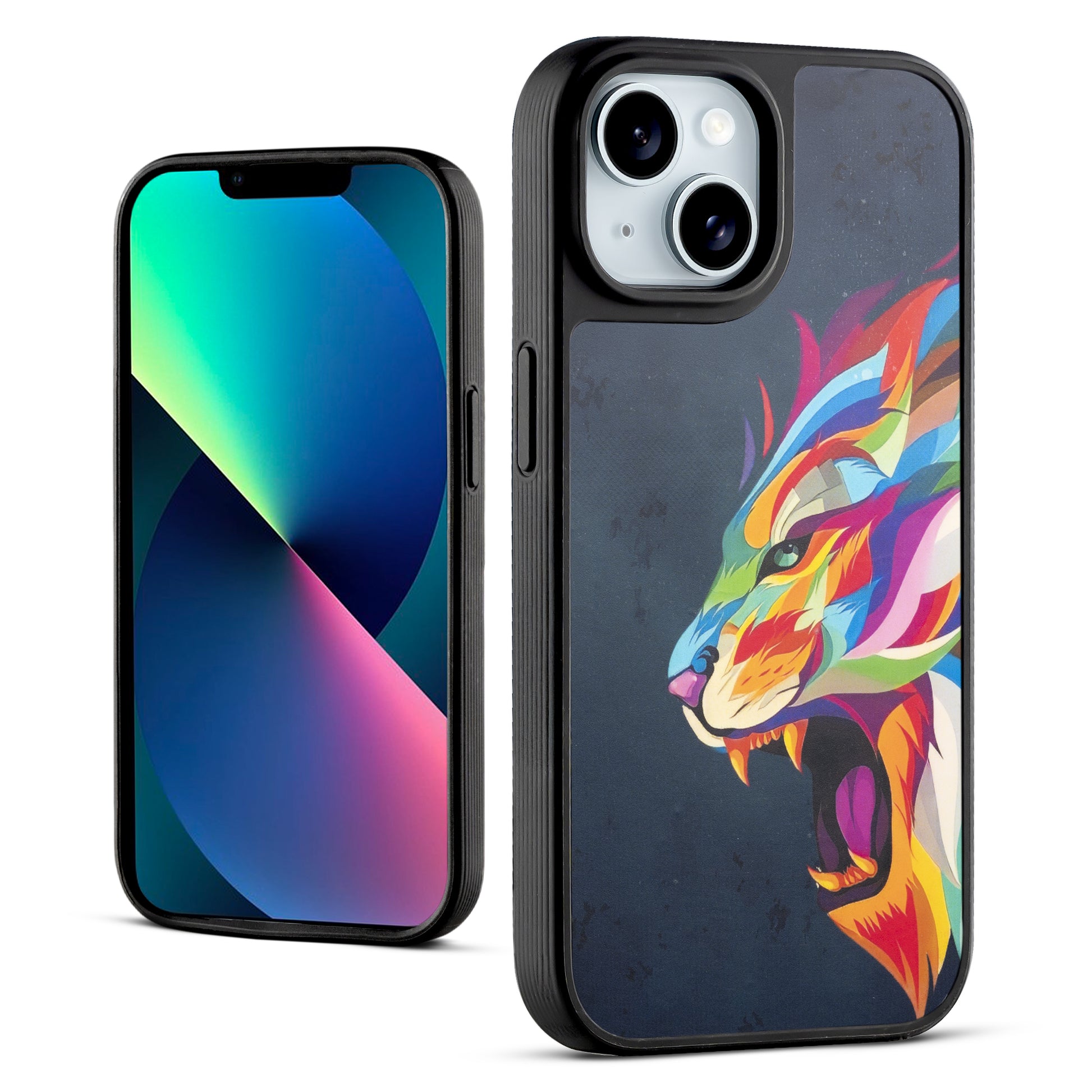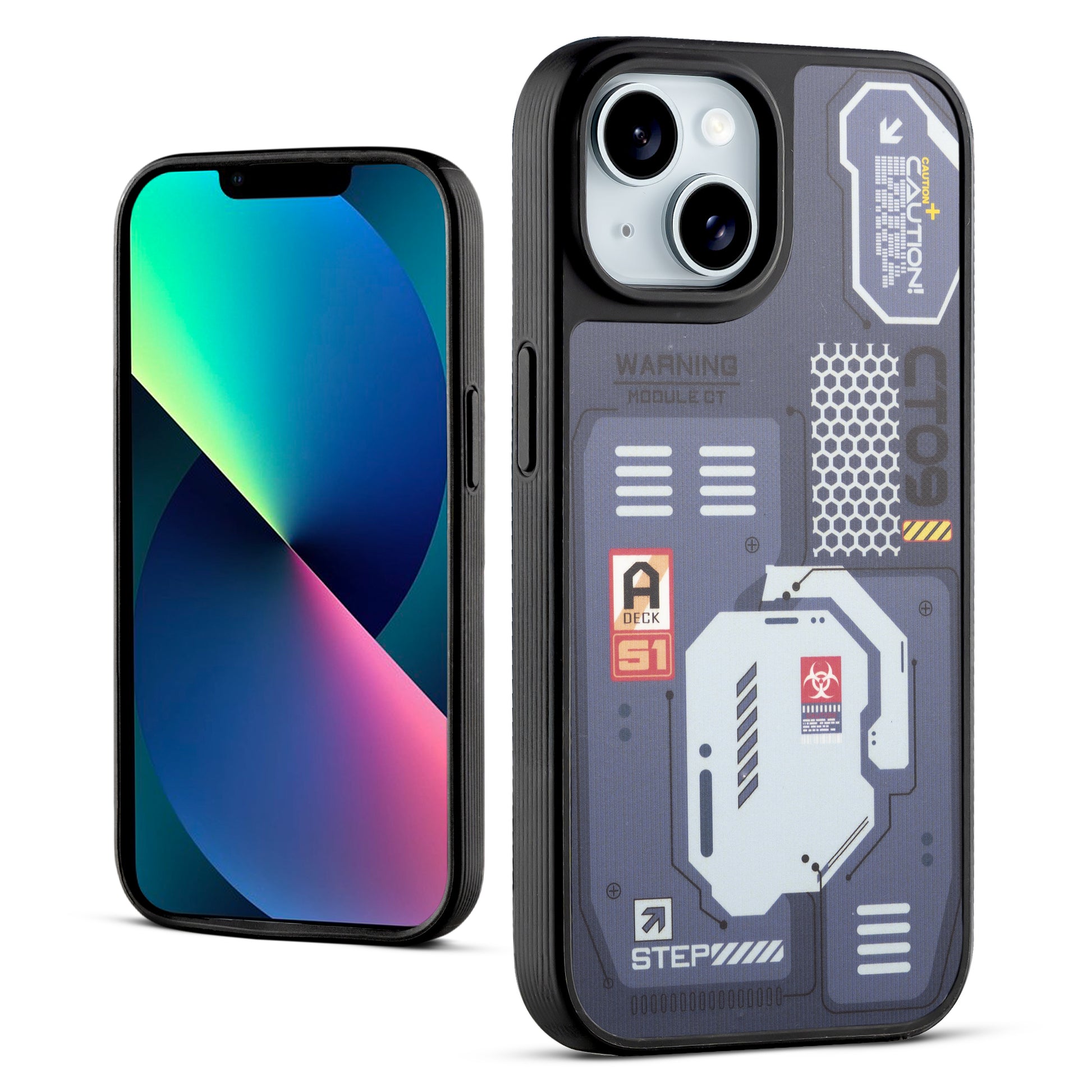 Silicone Textured Frame Printed Hard Back Case For Apple iPhone 13 With Raised Camera Bumper