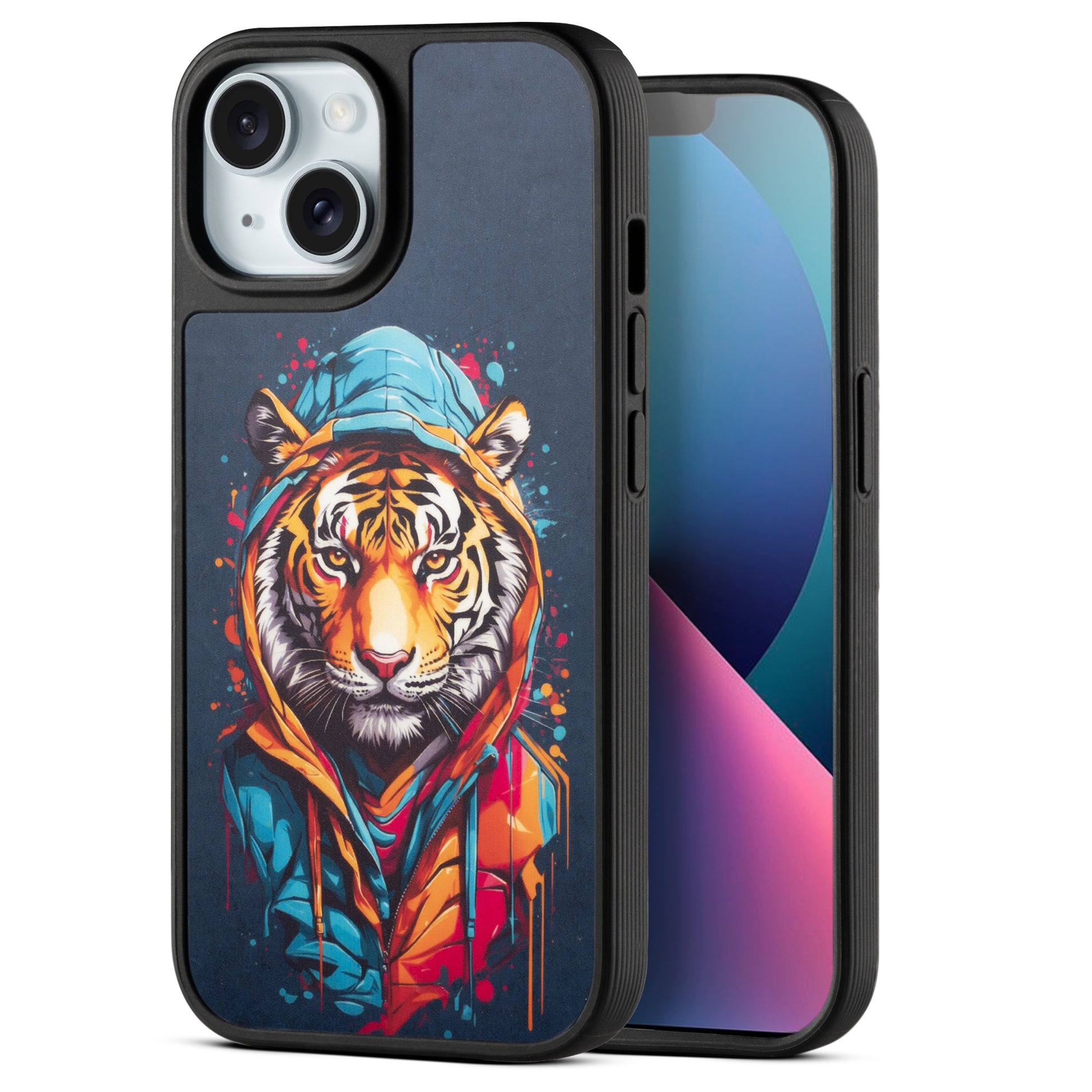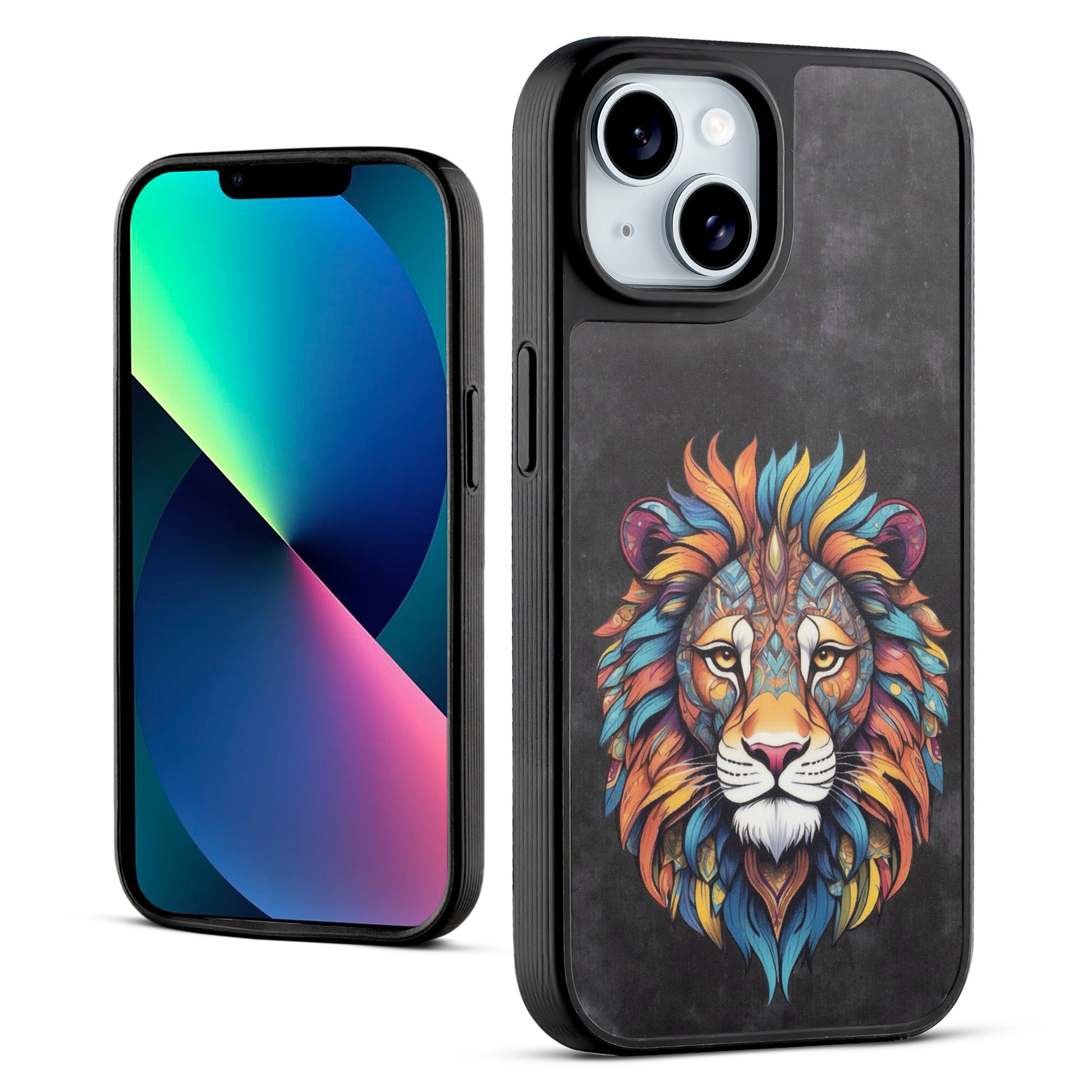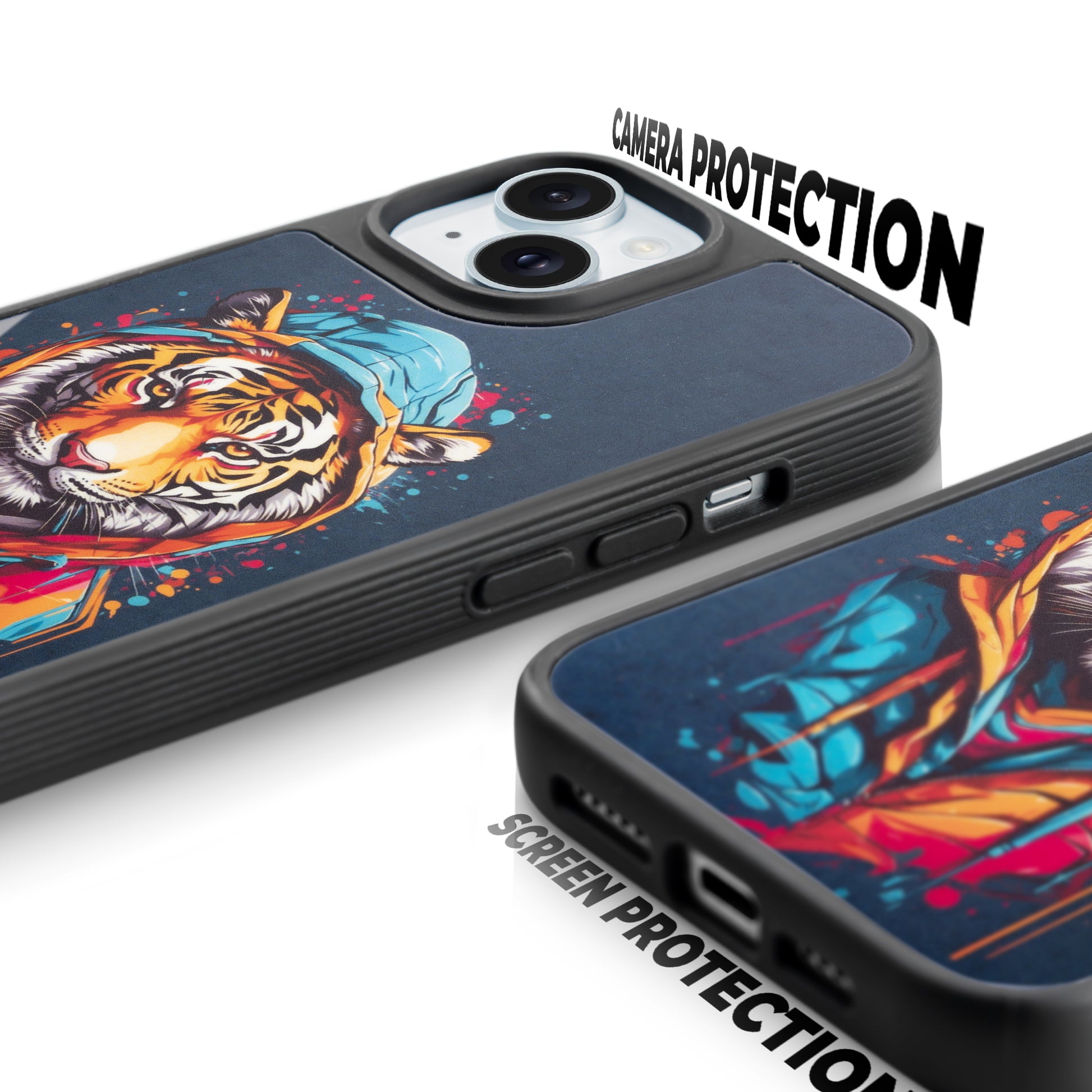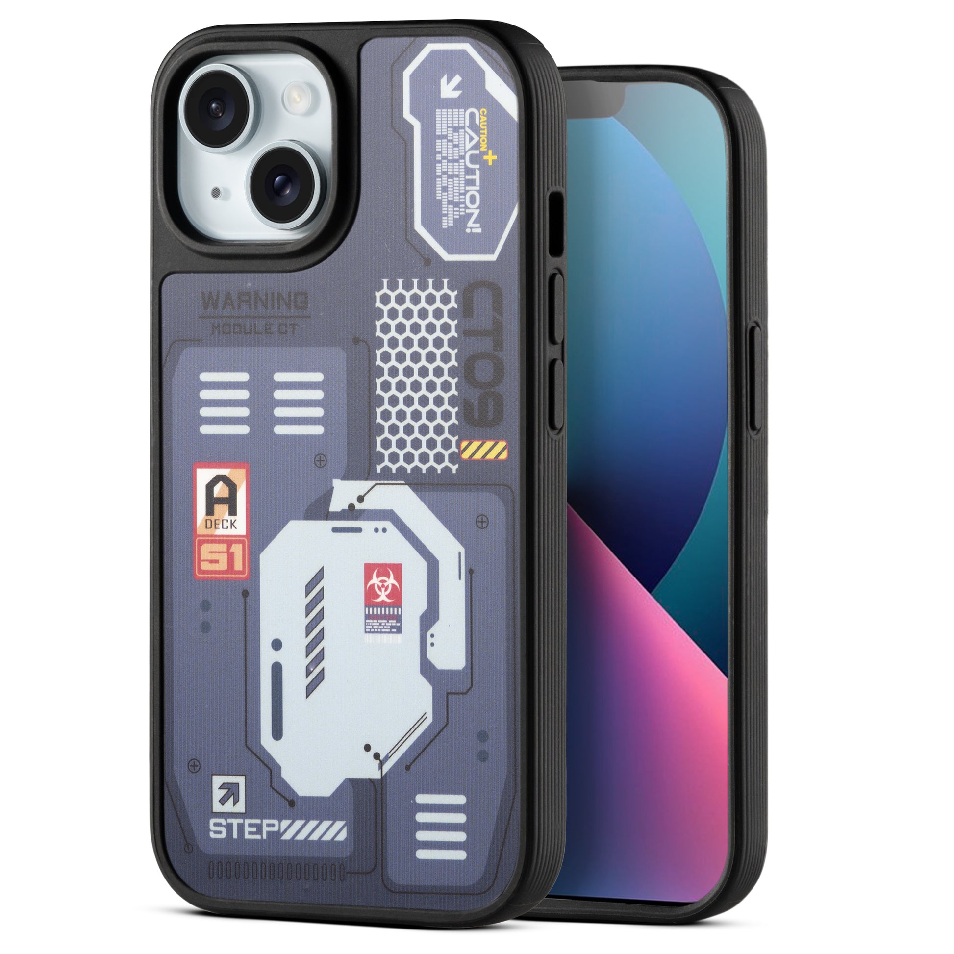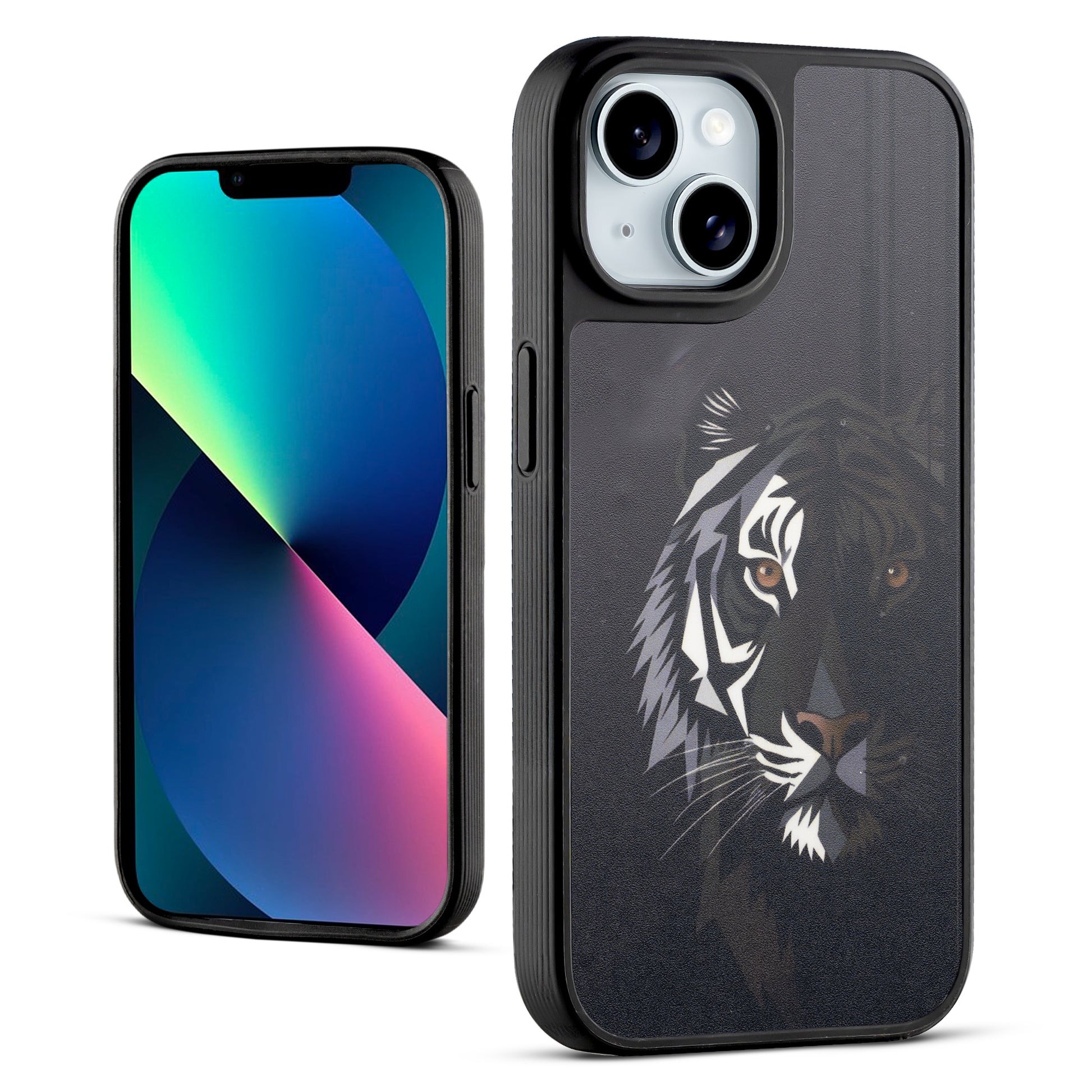 Silicone Textured Frame Printed Hard Back Case For Apple iPhone 13 With Raised Camera Bumper