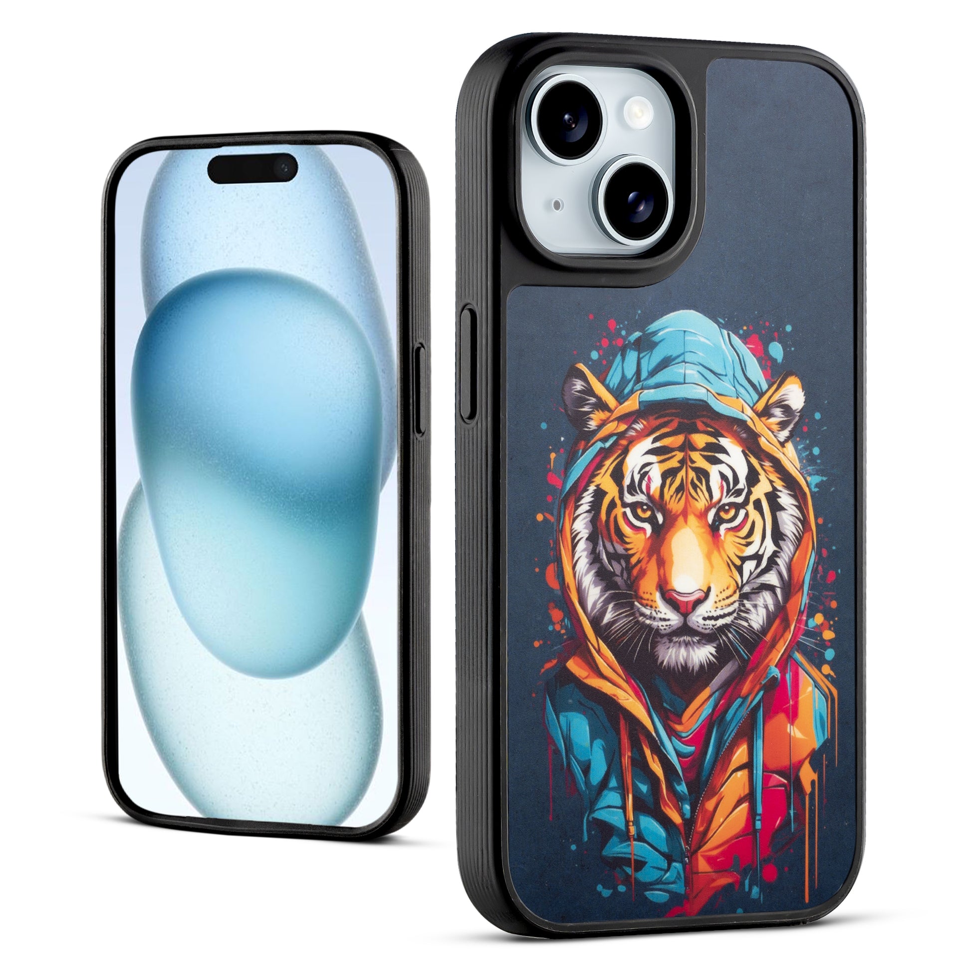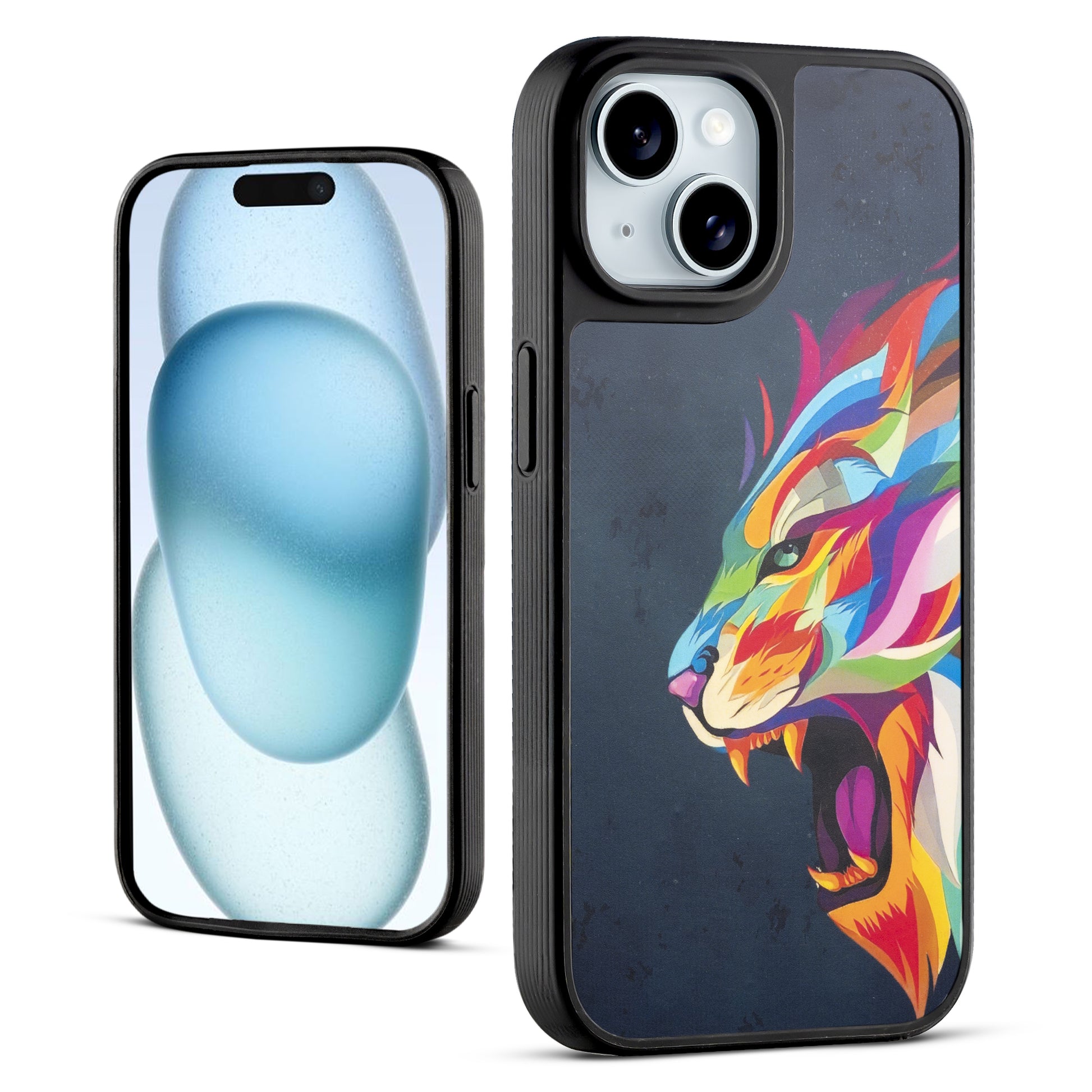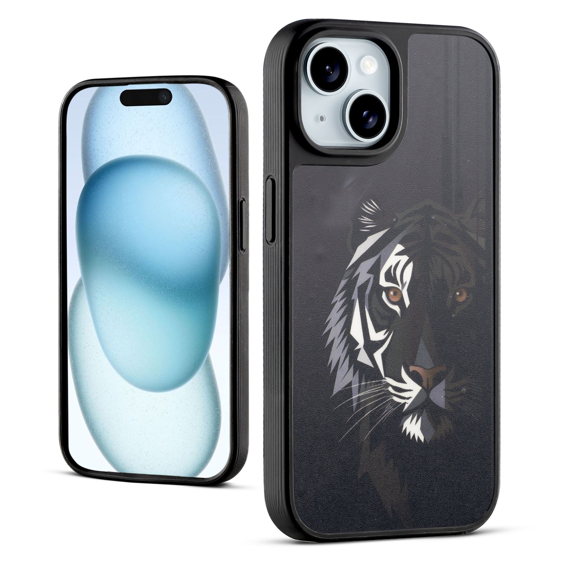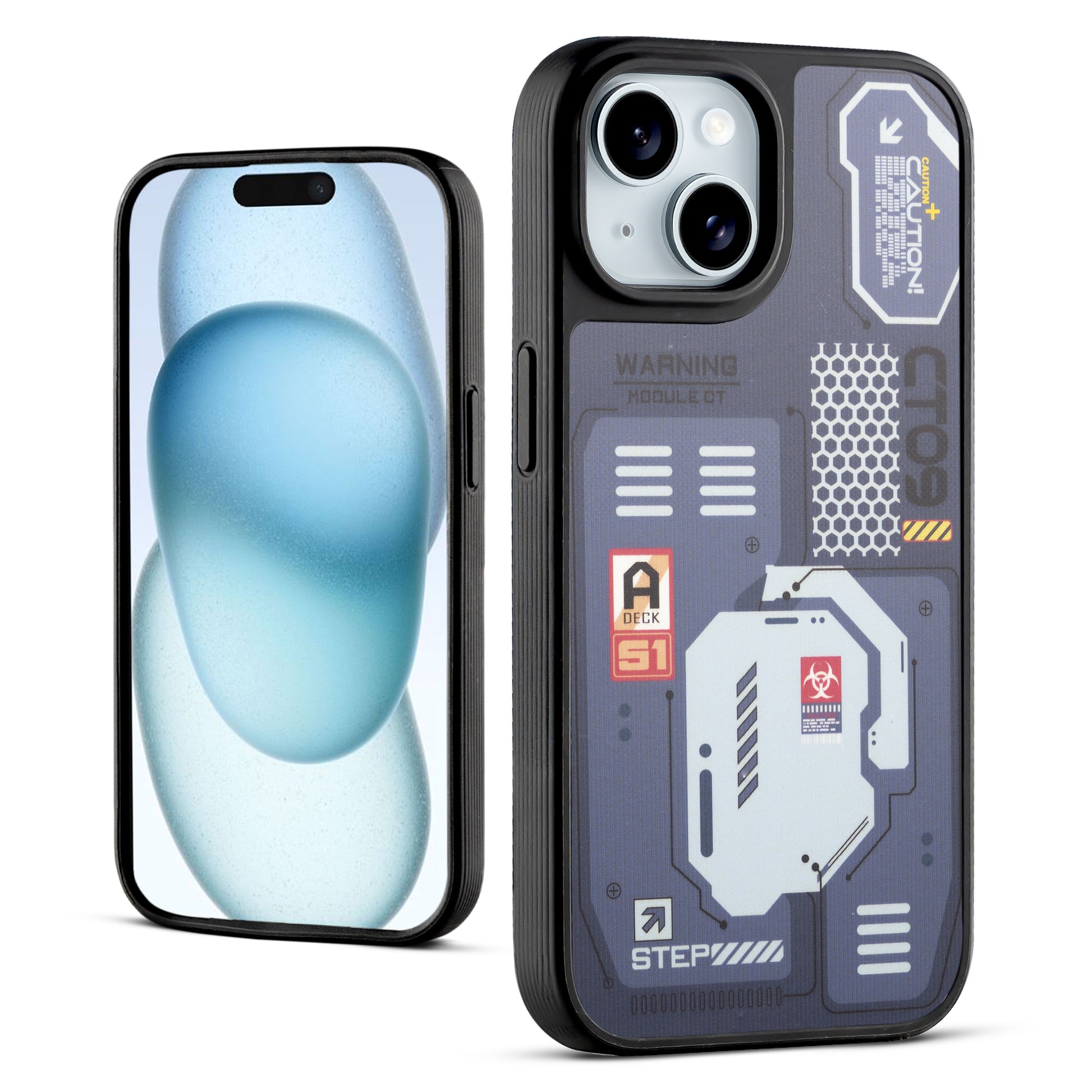Silicone Textured Frame Printed Hard Back Case For Apple iPhone 15 With Raised Camera Bumper