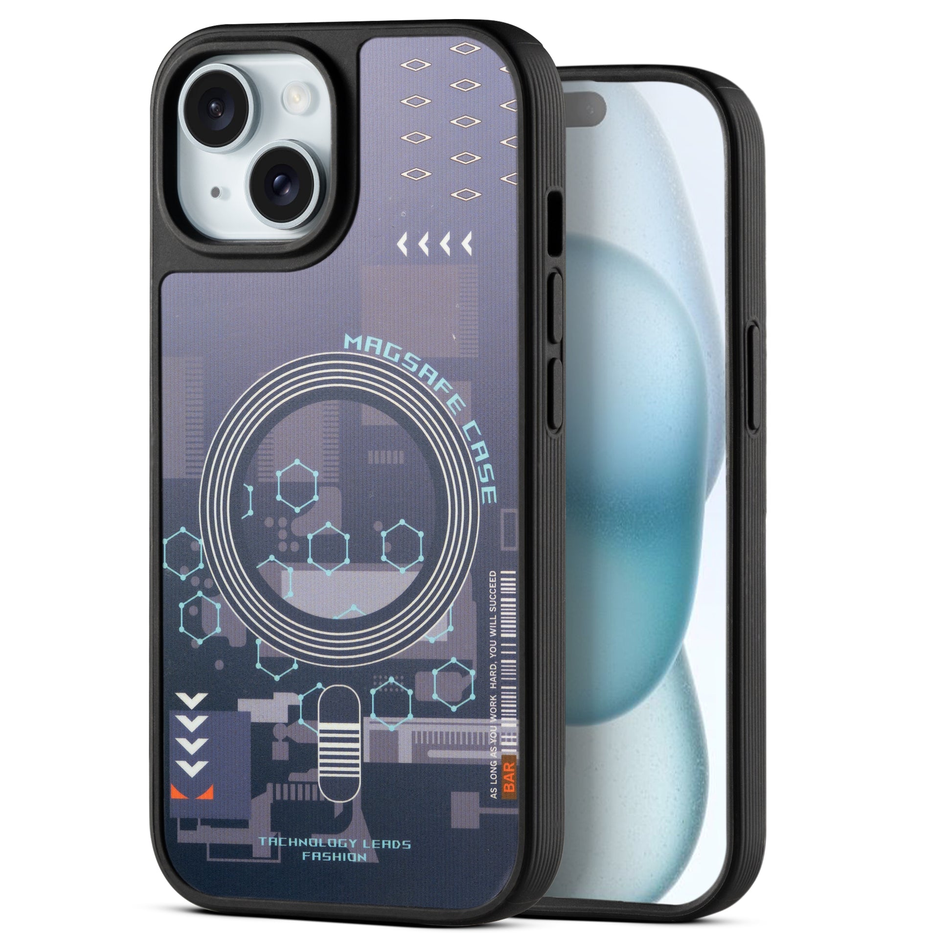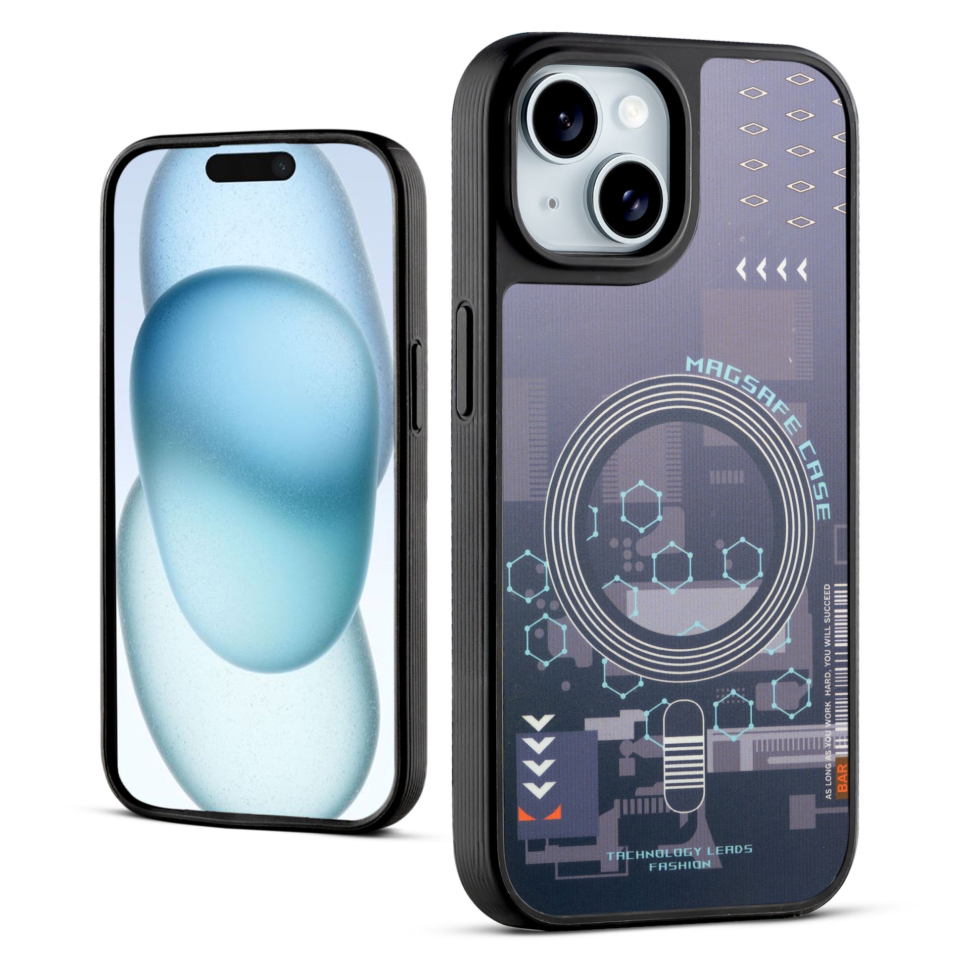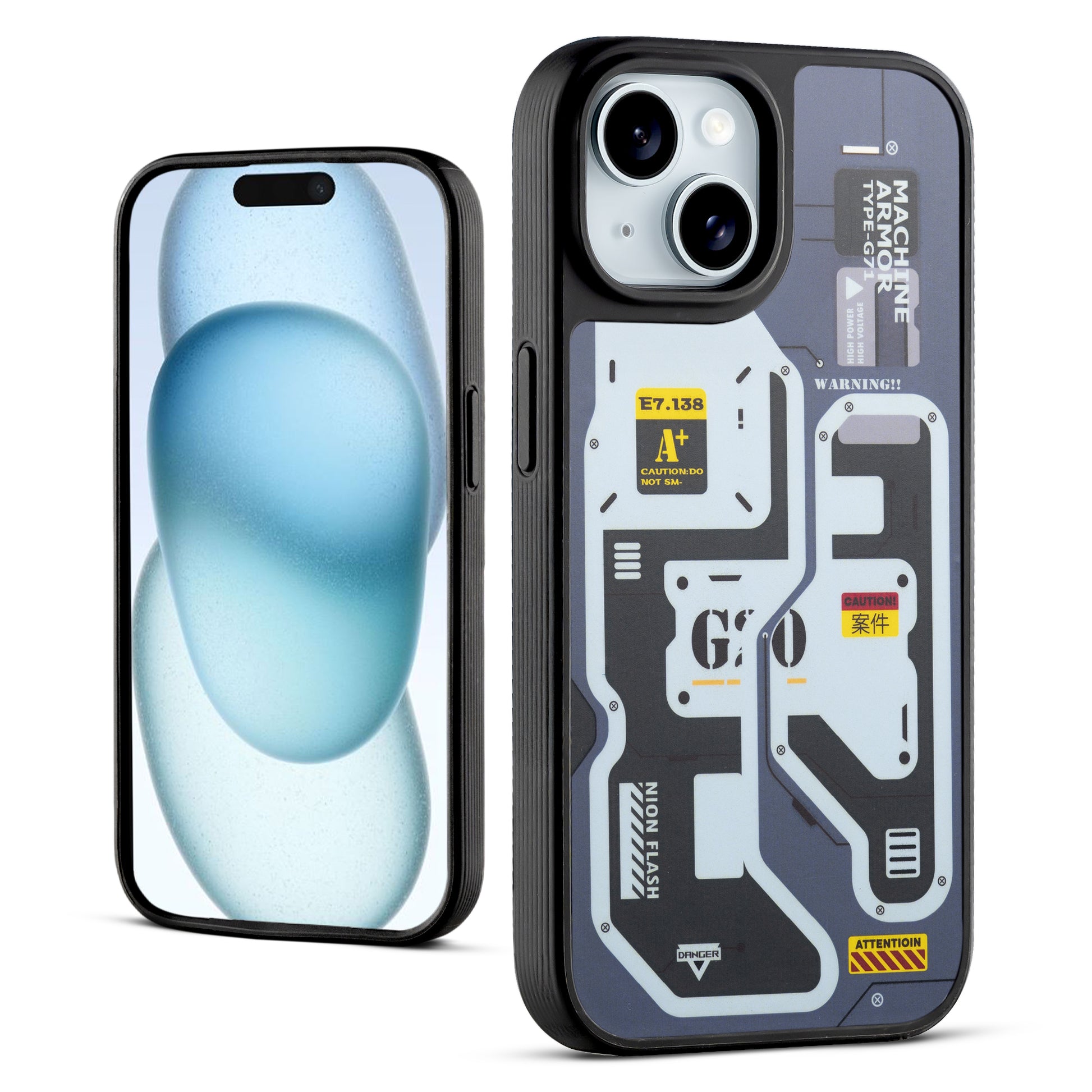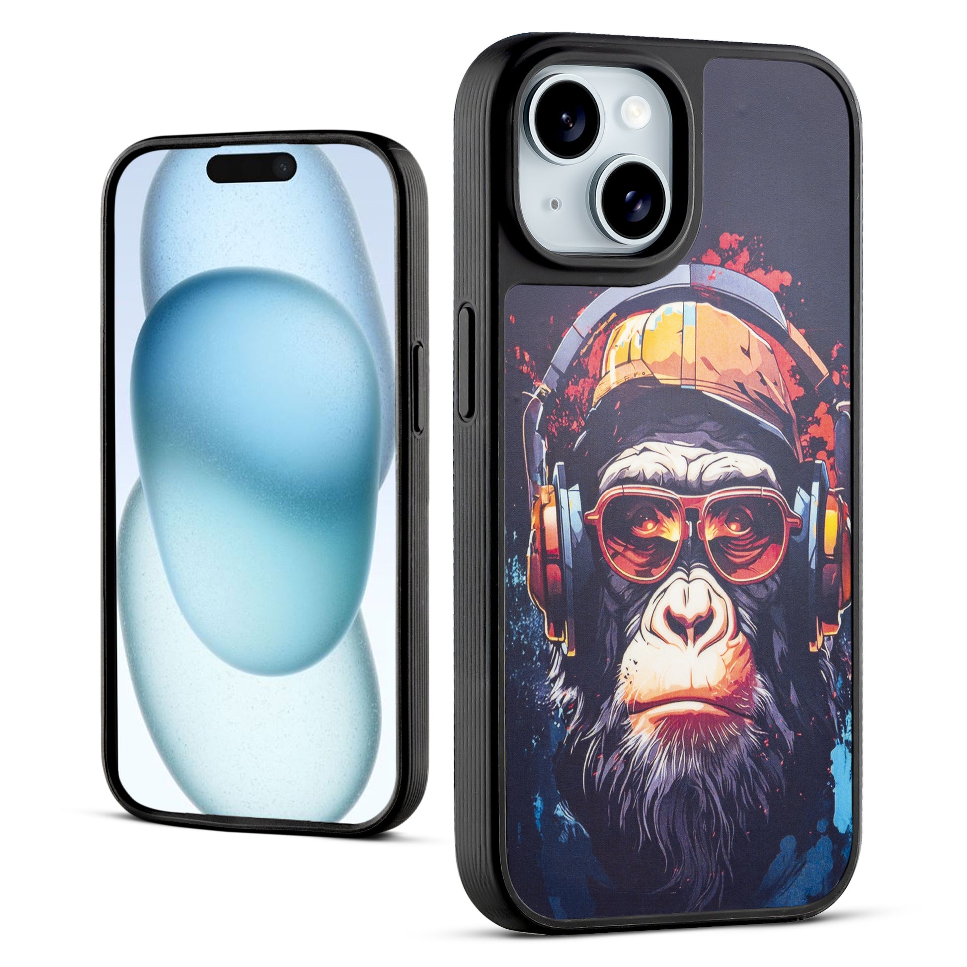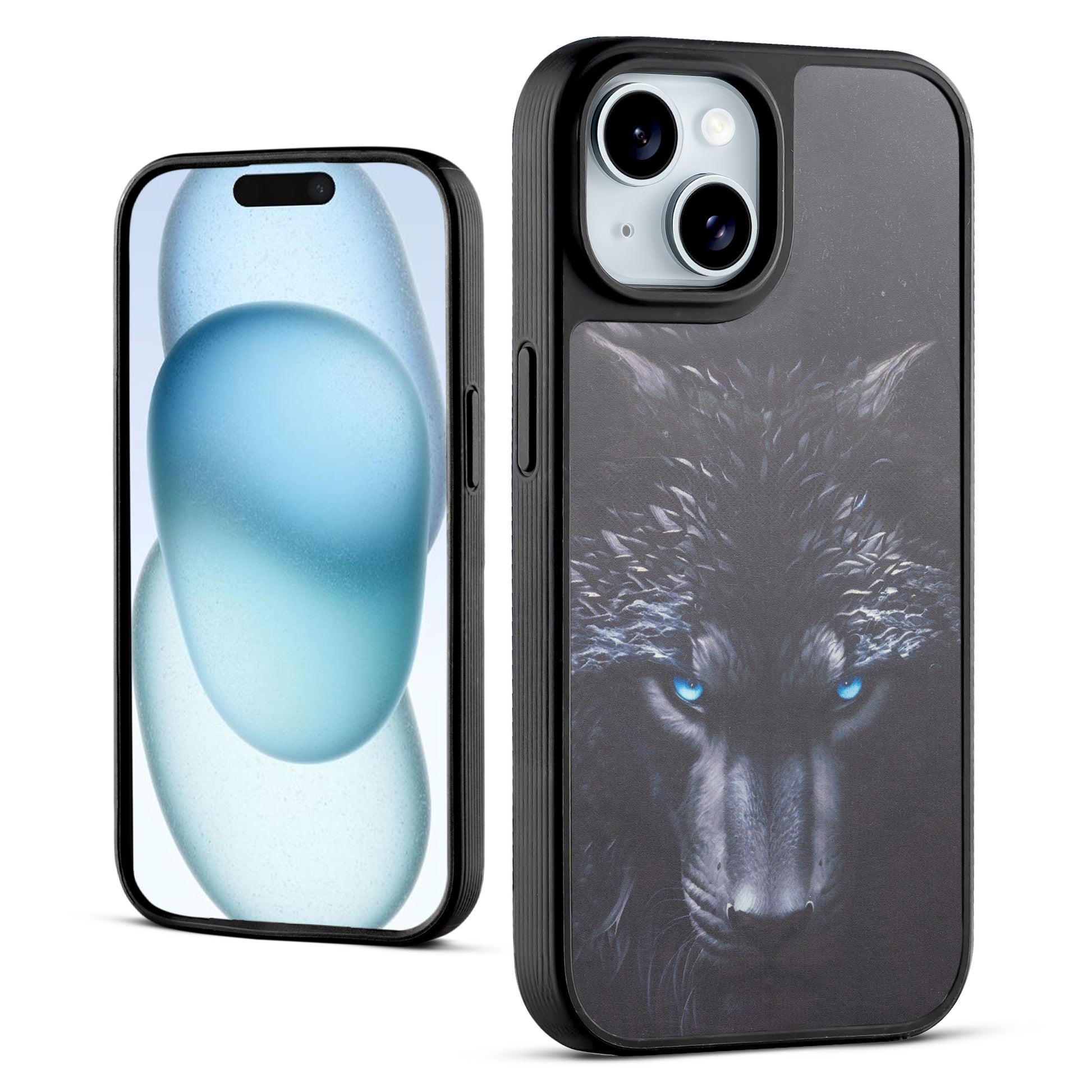 Silicone Textured Frame Printed Hard Back Case For Apple iPhone 15 With Raised Camera Bumper