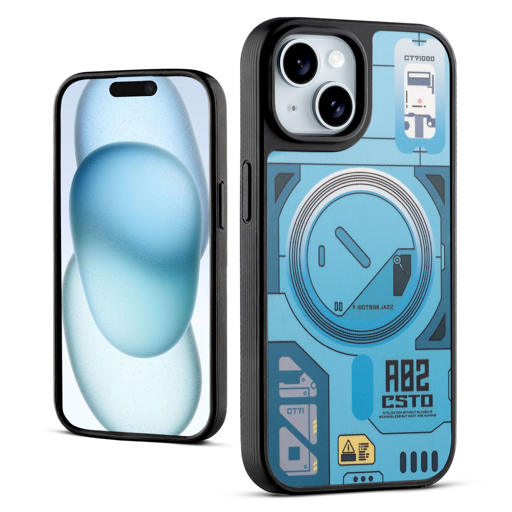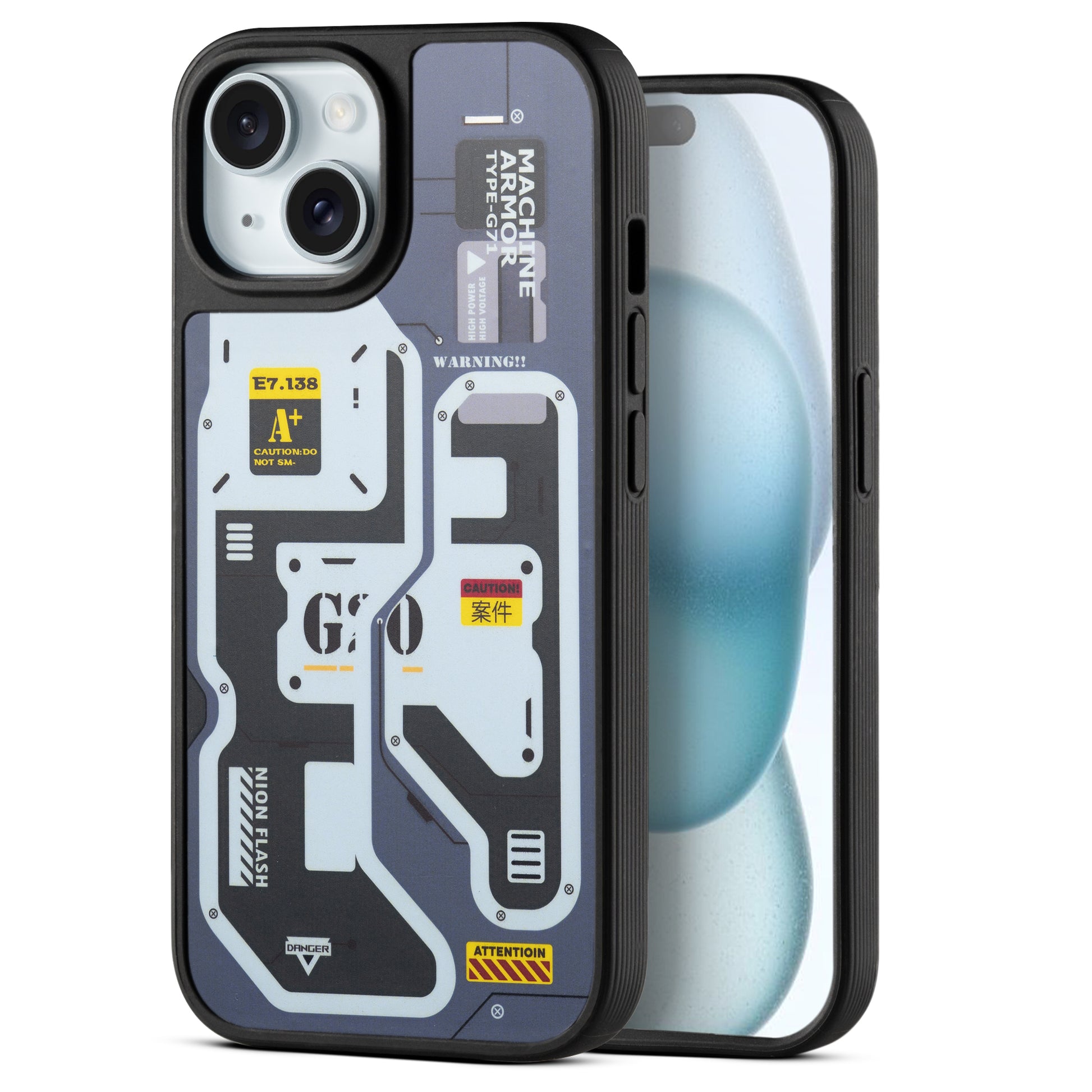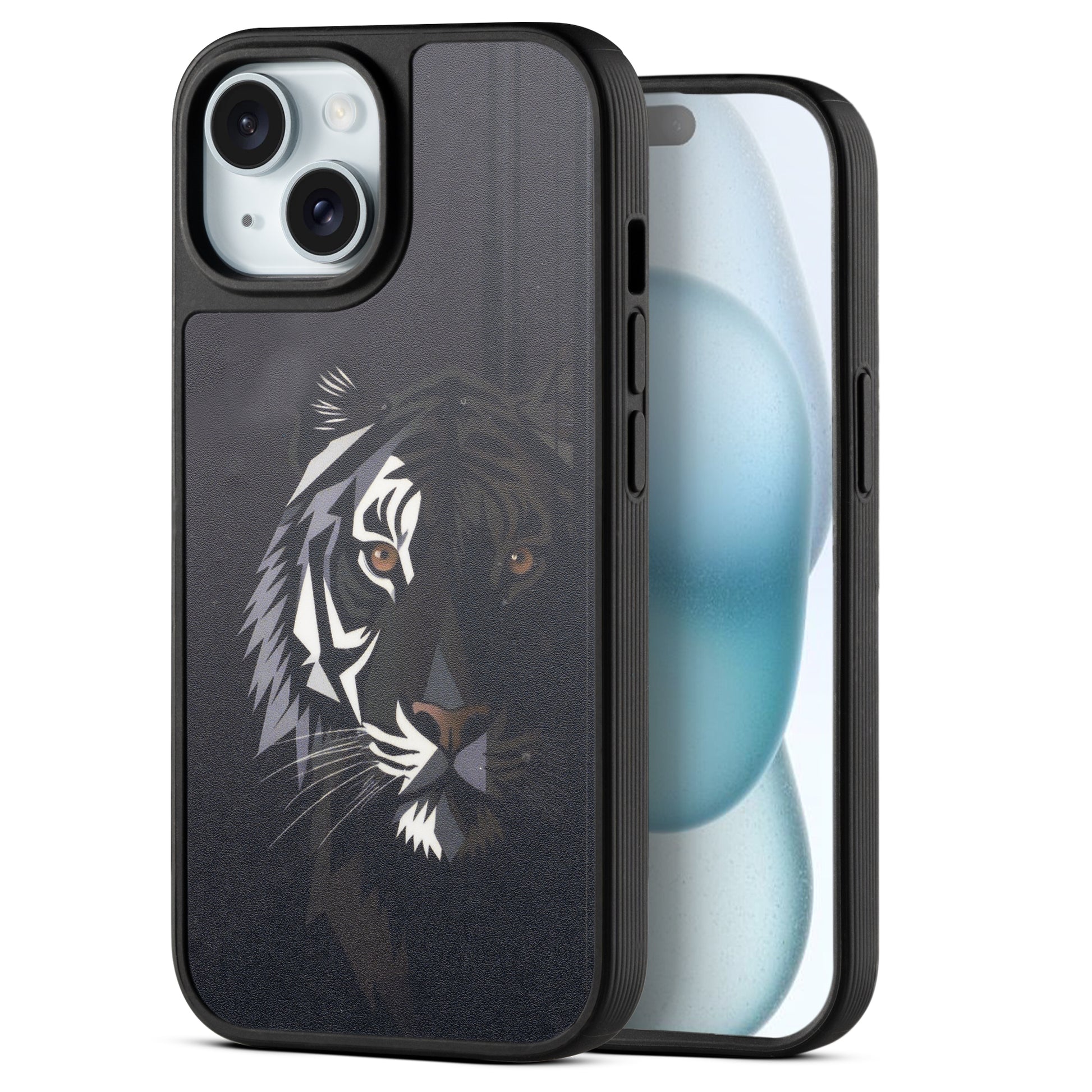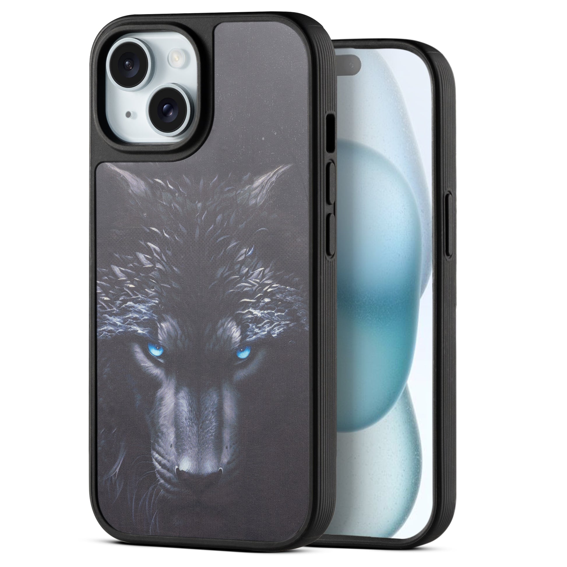 Silicone Textured Frame Printed Hard Back Case For Apple iPhone 15 With Raised Camera Bumper
