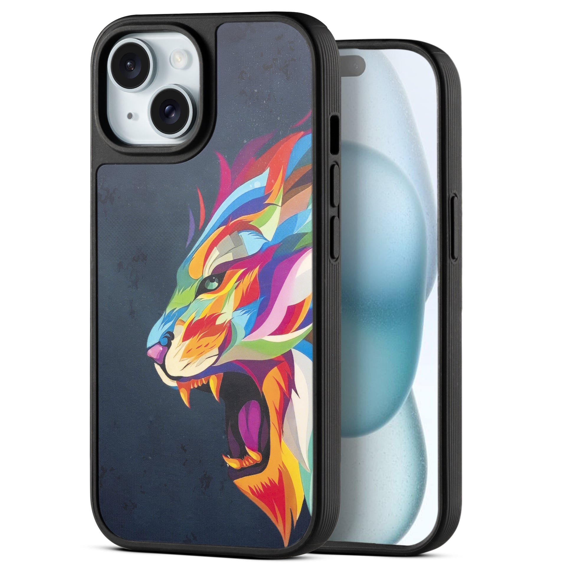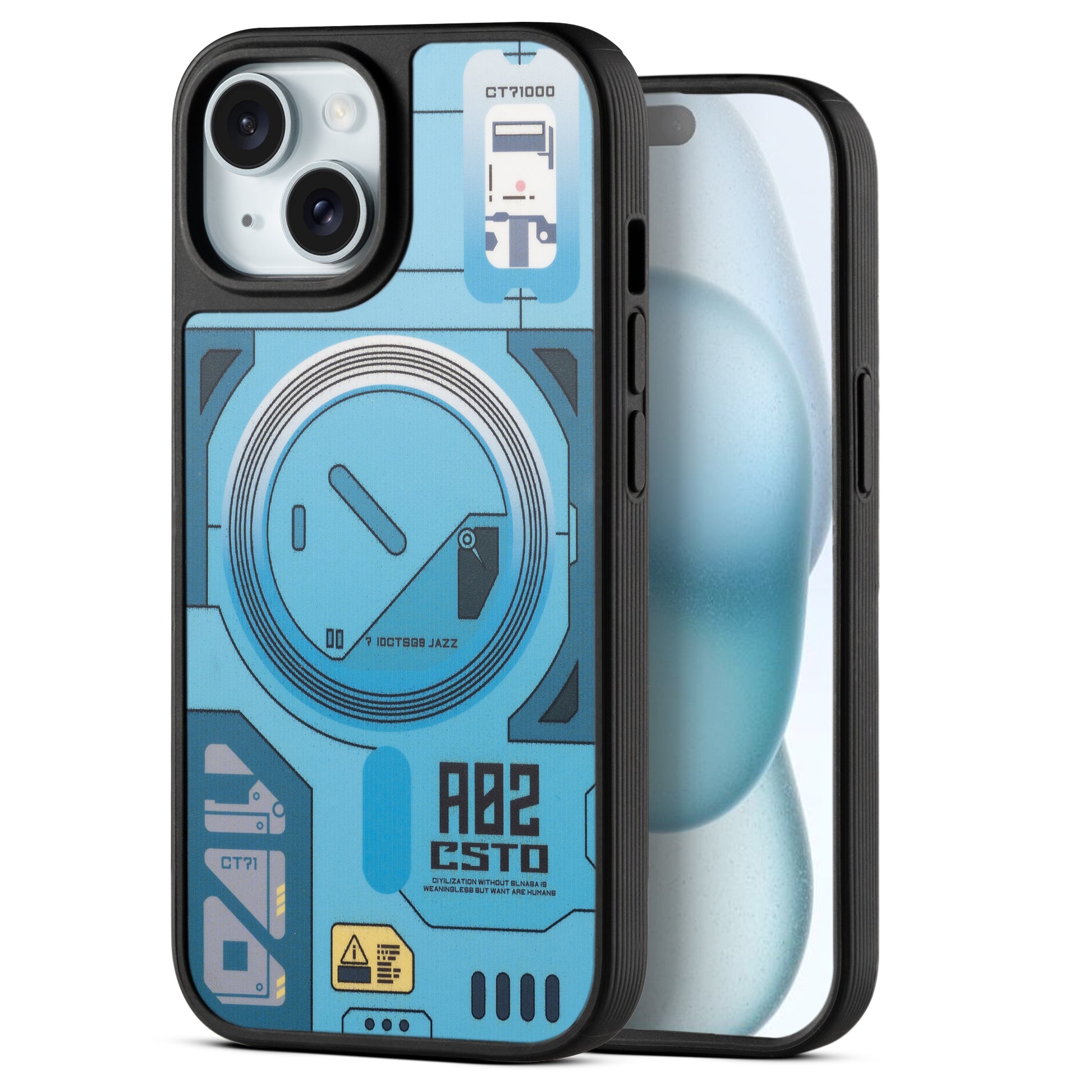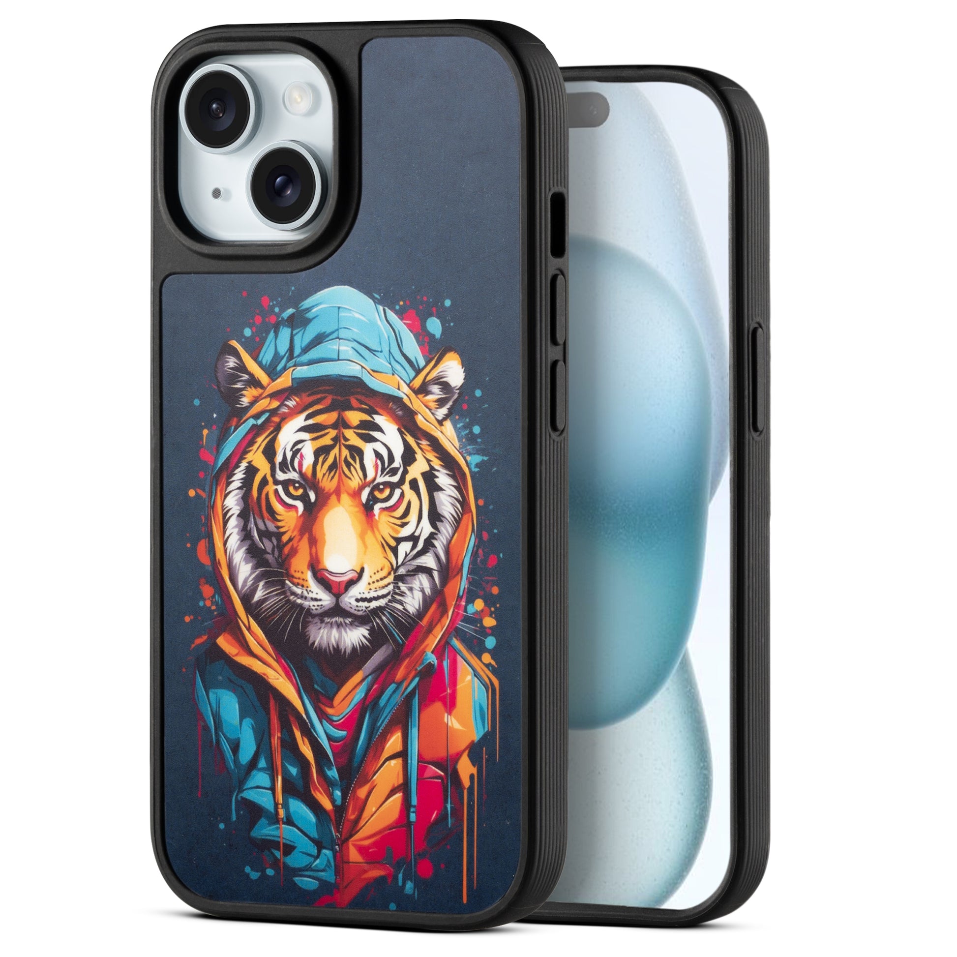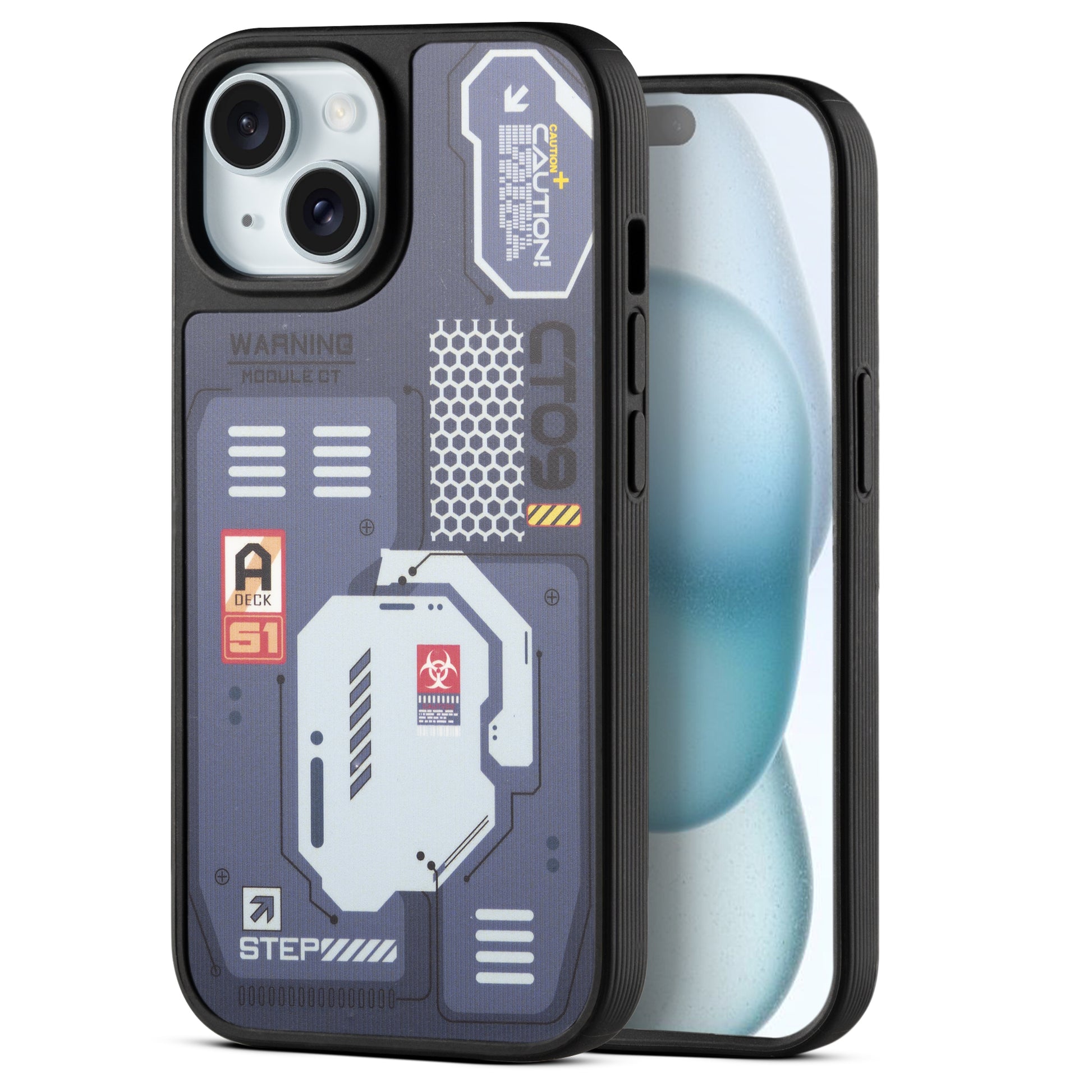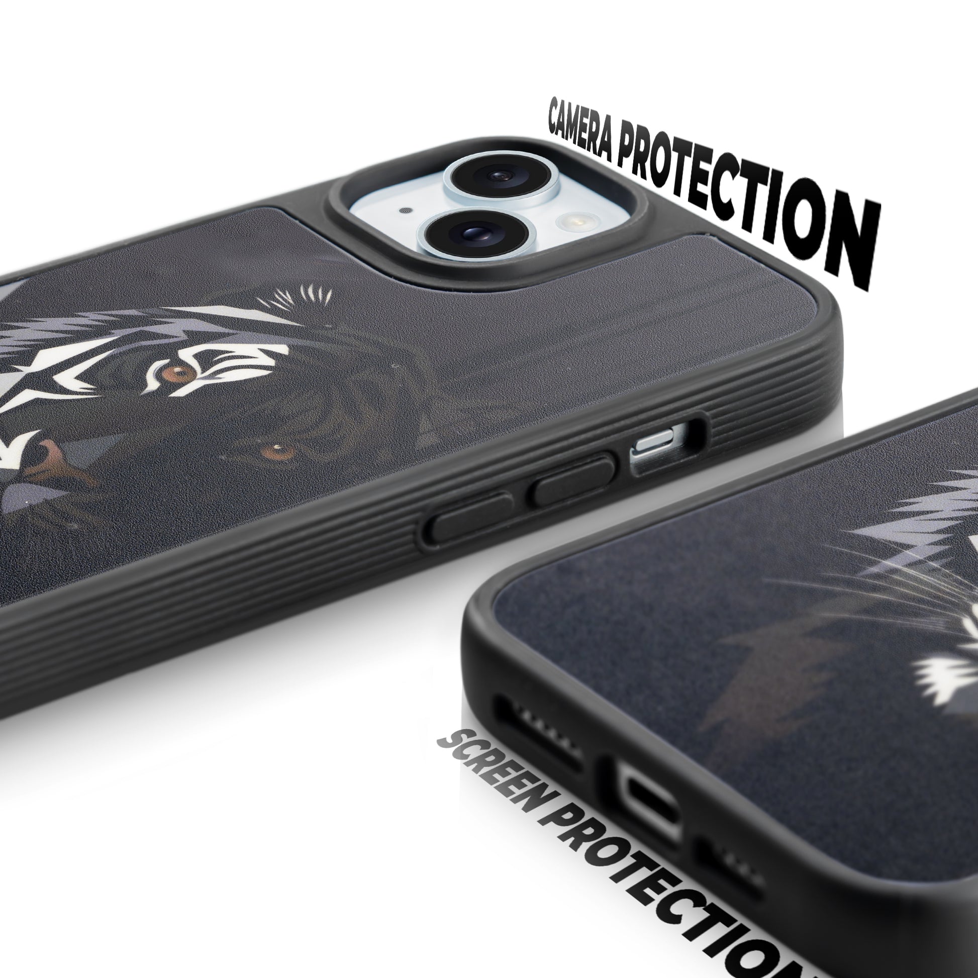 Silicone Textured Frame Printed Hard Back Case For Apple iPhone 15 With Raised Camera Bumper