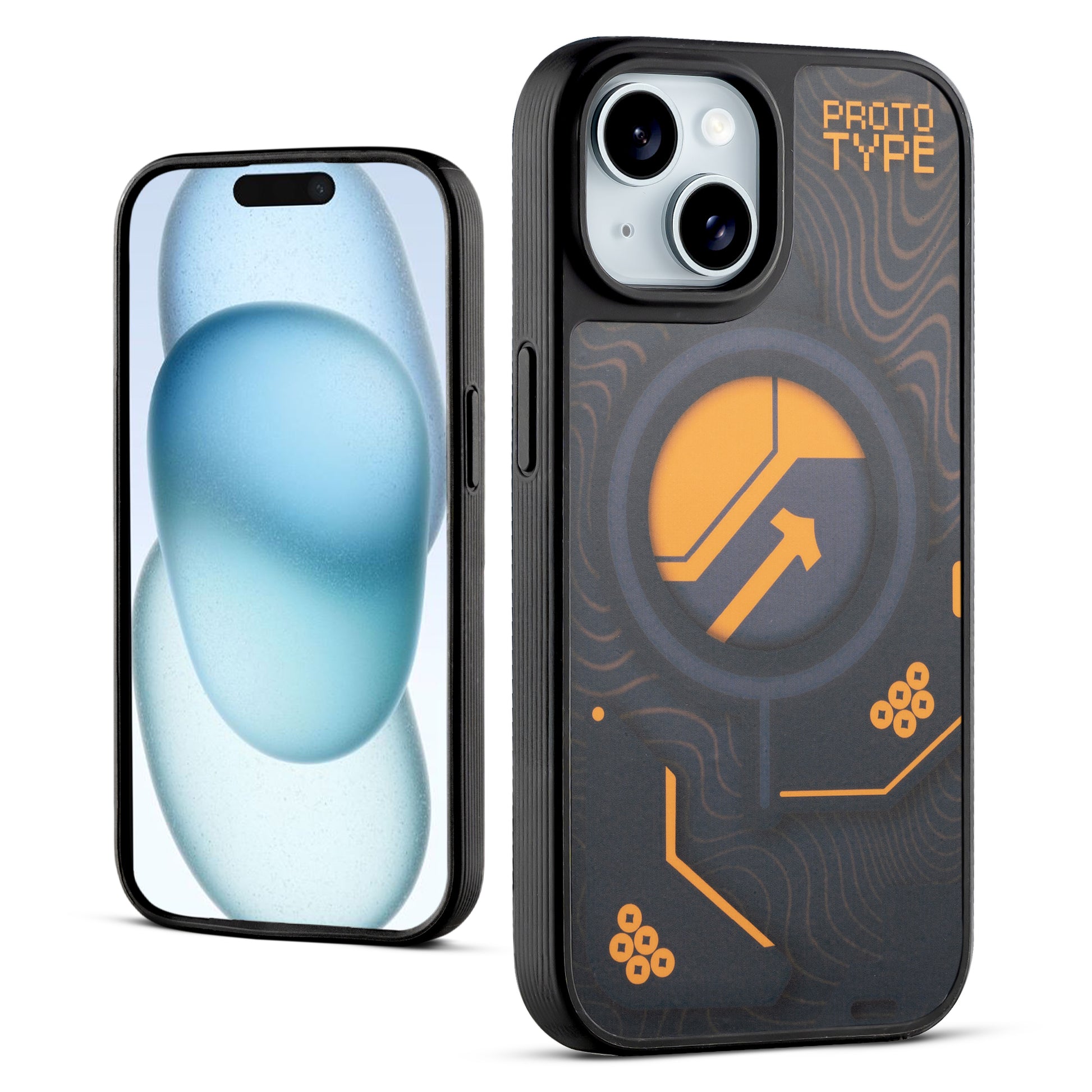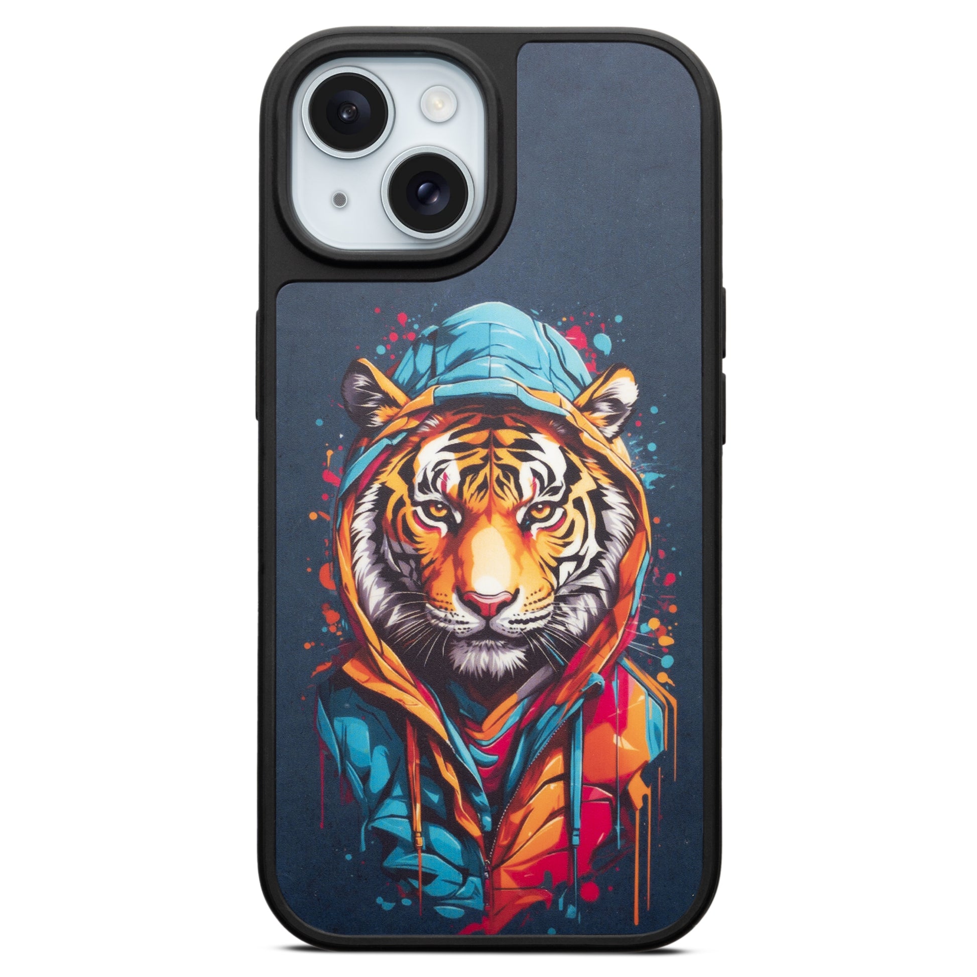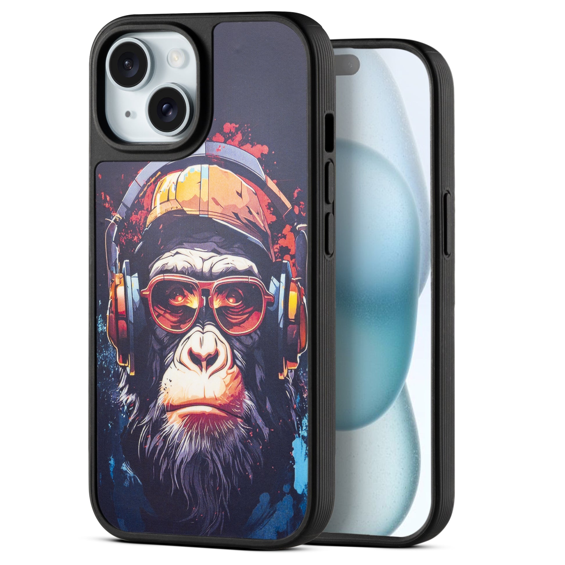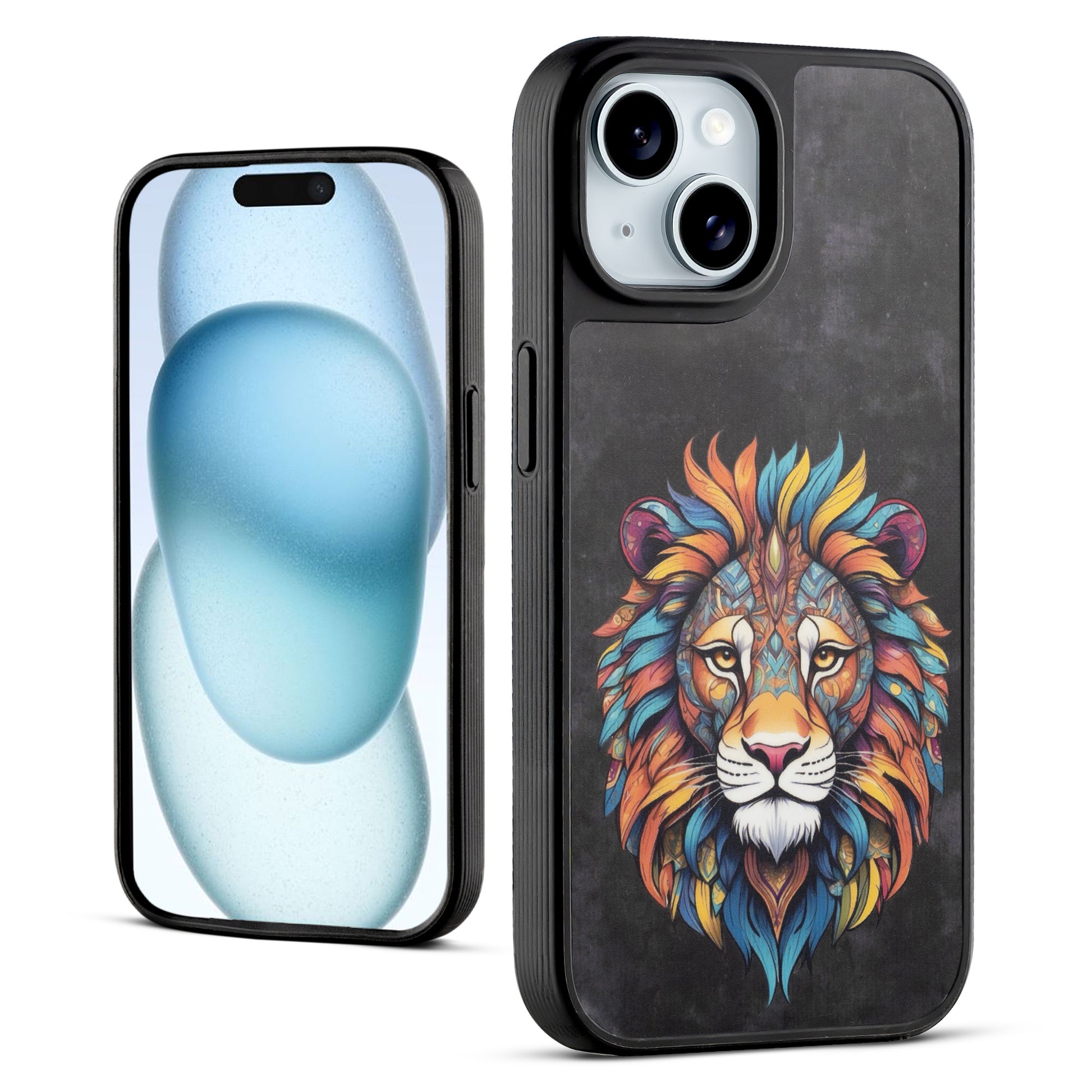 Silicone Textured Frame Printed Hard Back Case For Apple iPhone 15 With Raised Camera Bumper