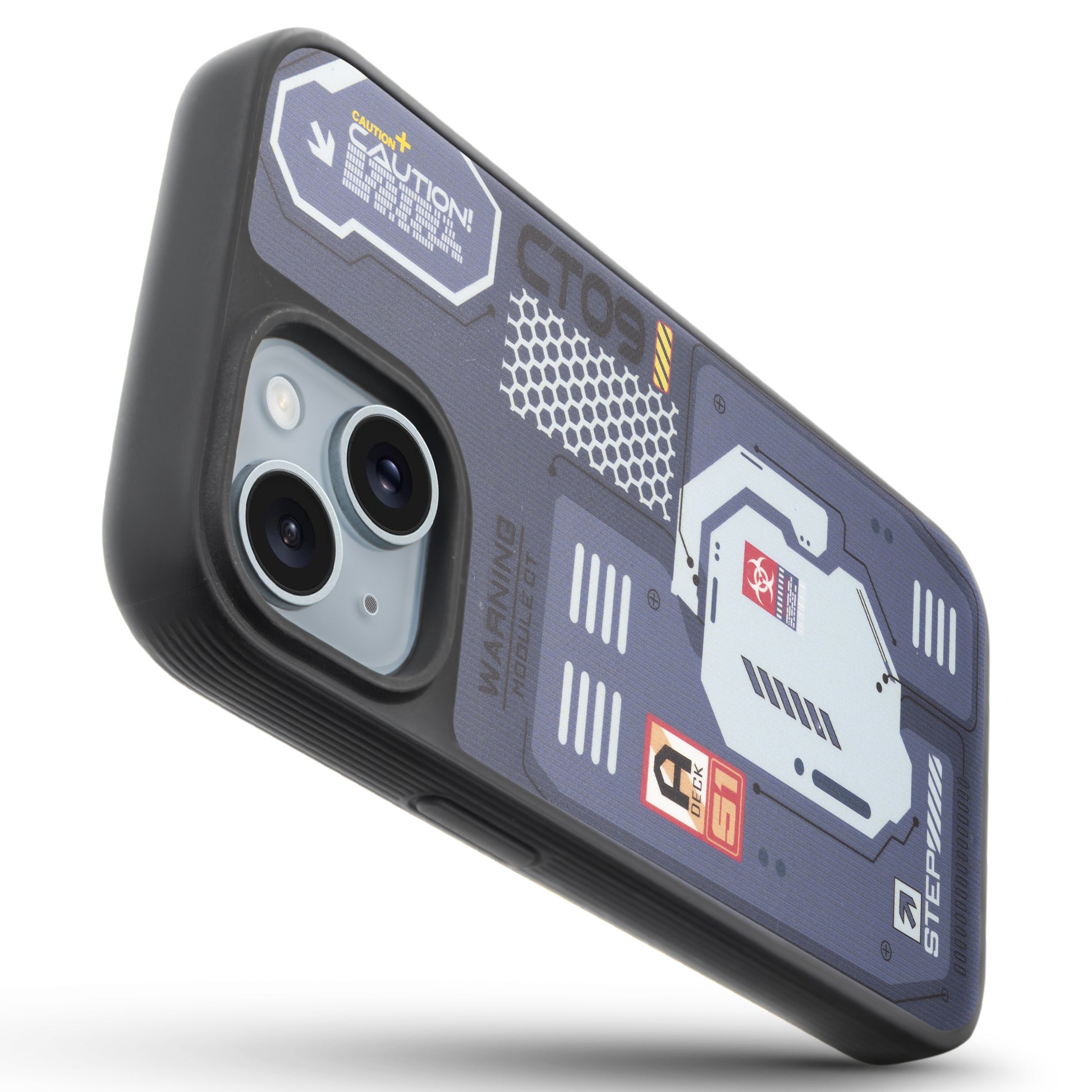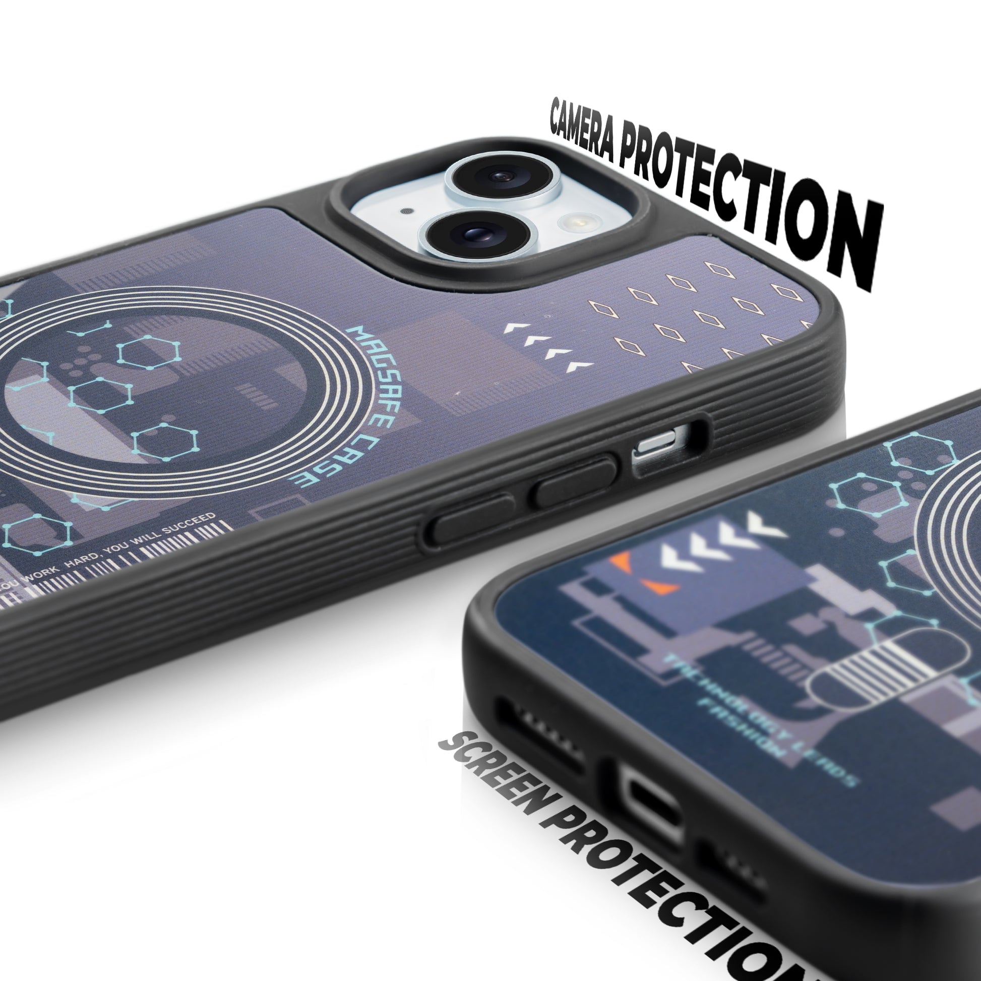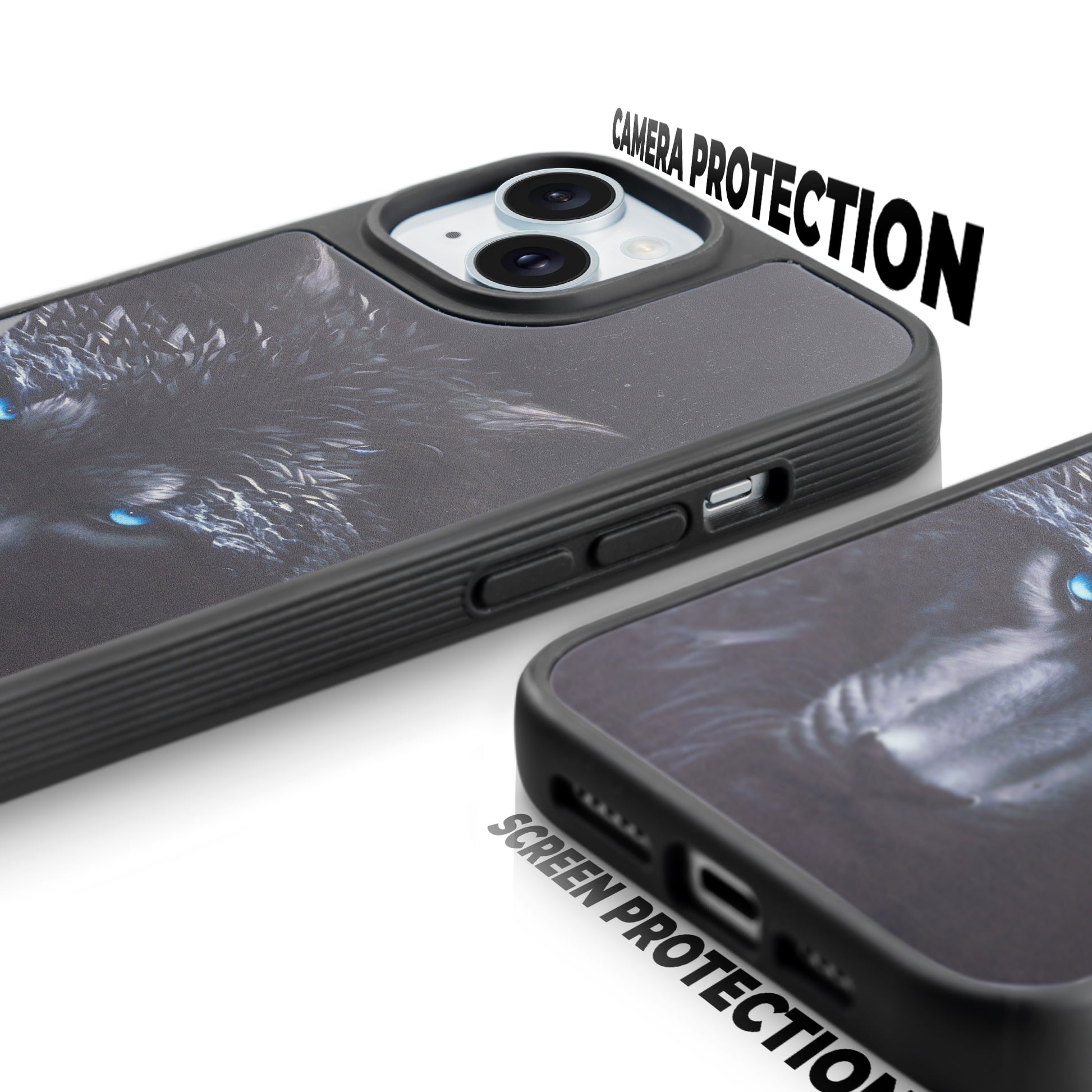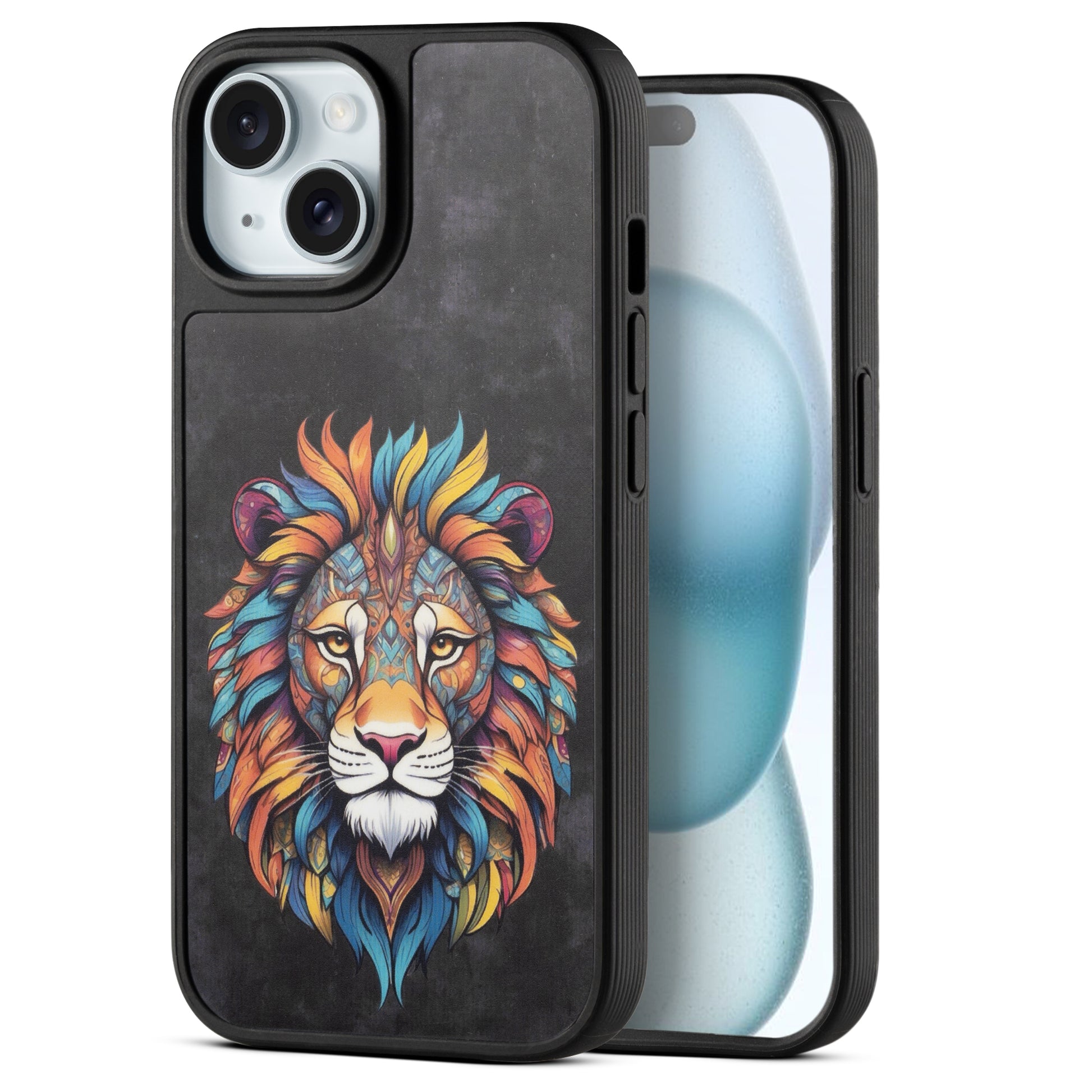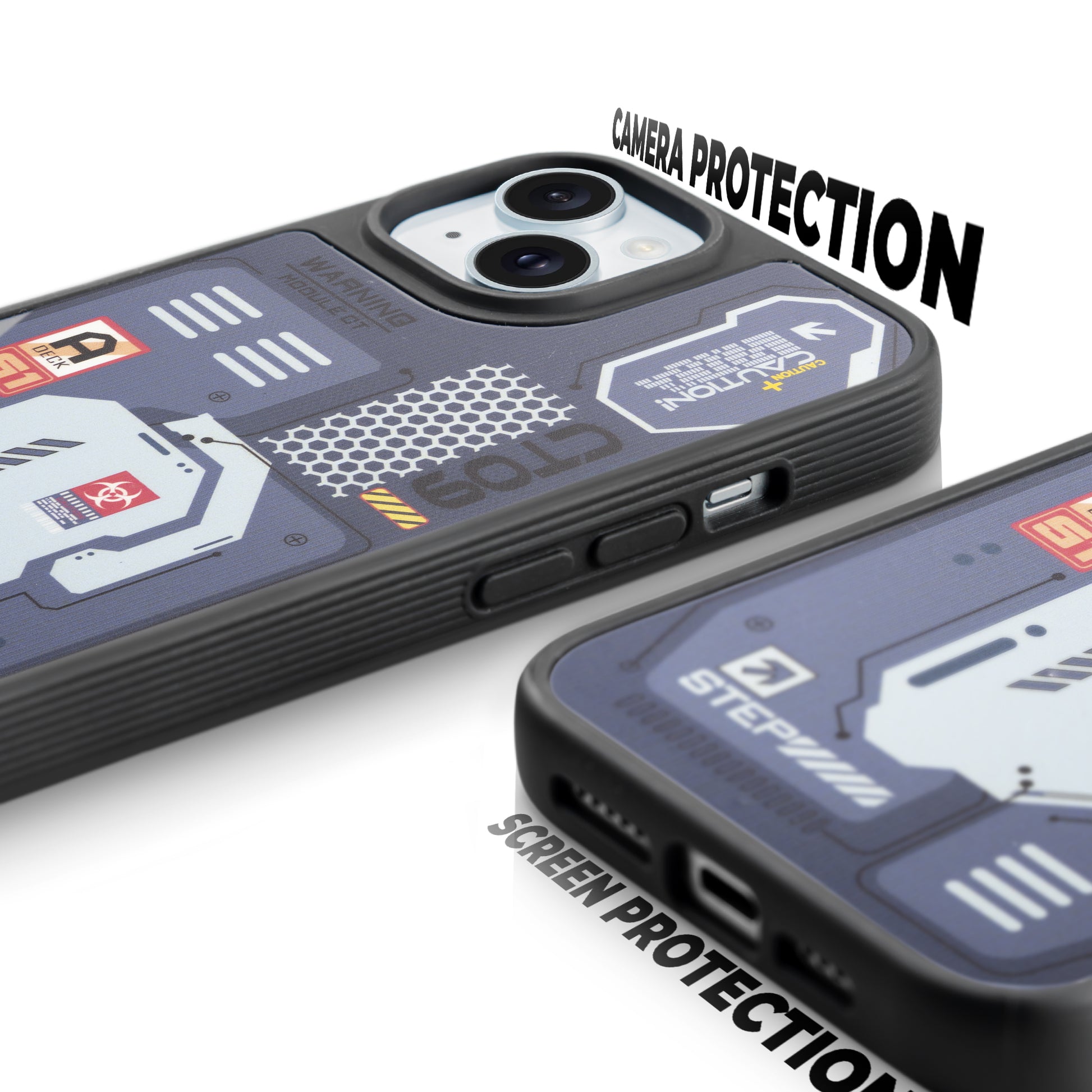 Silicone Textured Frame Printed Hard Back Case For Apple iPhone 15 With Raised Camera Bumper