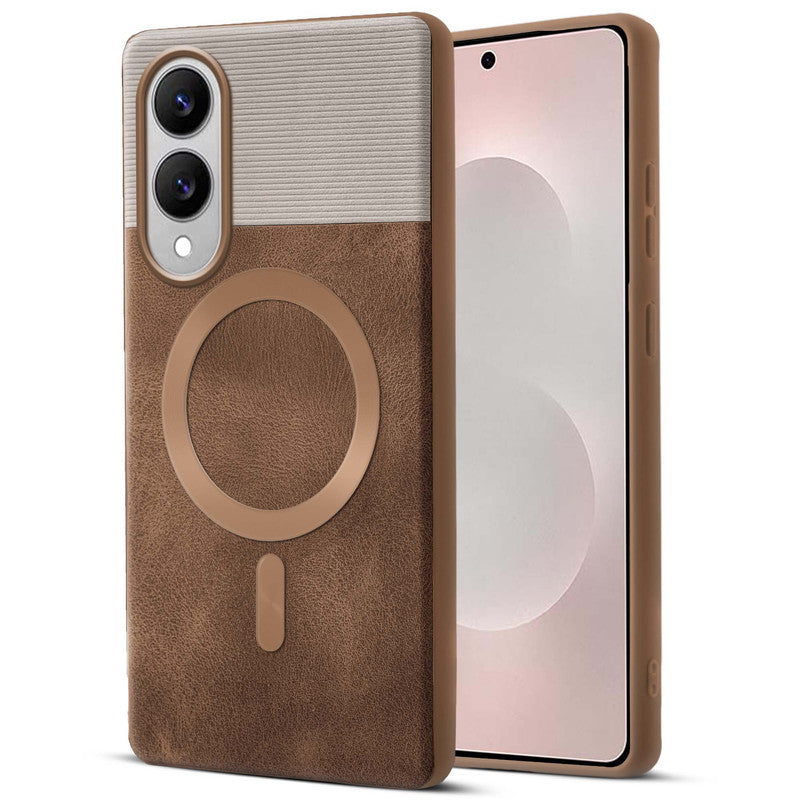 Smooth PU Leather Back Cover for Samsung S25 Edge 5G , MagSafe Support & Soft Fabric Inside