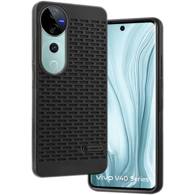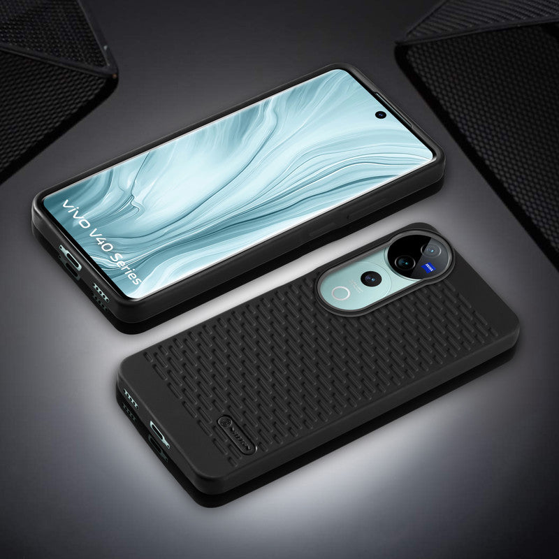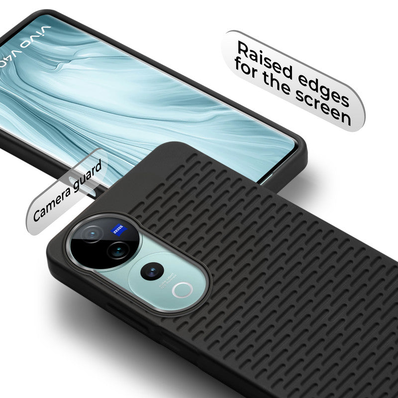Soft Silicone Mobile Back Cover For Vivo V40 5G with Dash Type Groove and Matte Gray Camera Ring