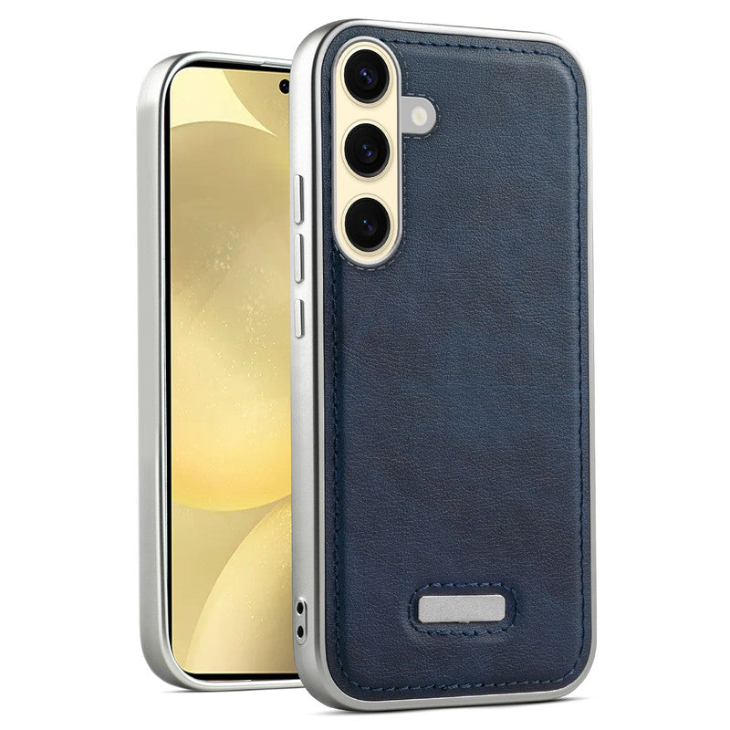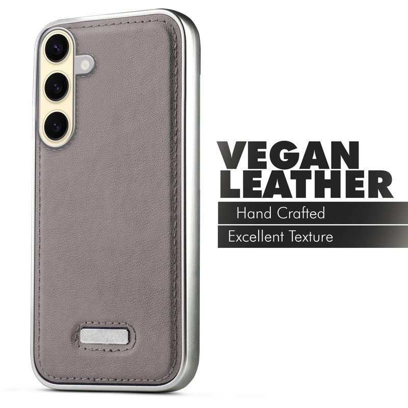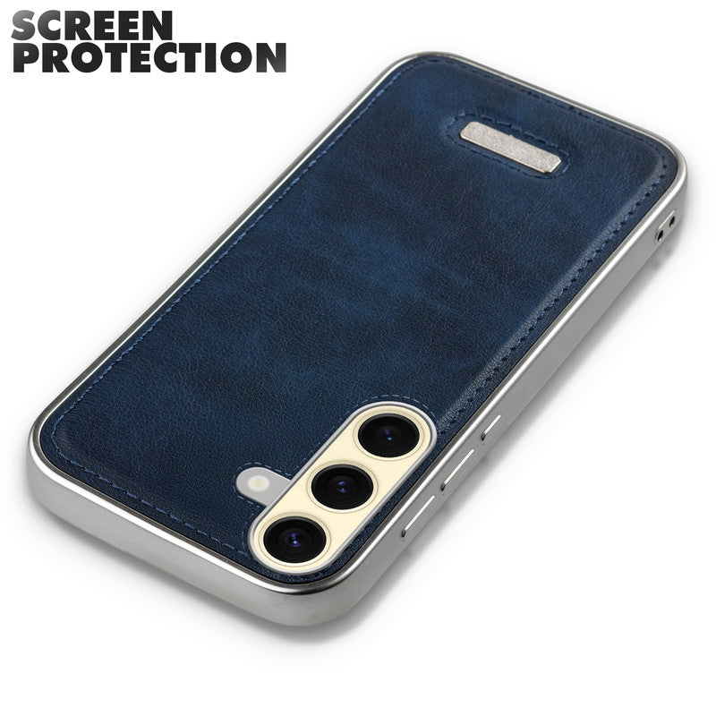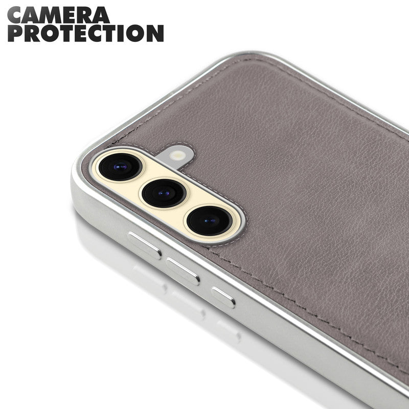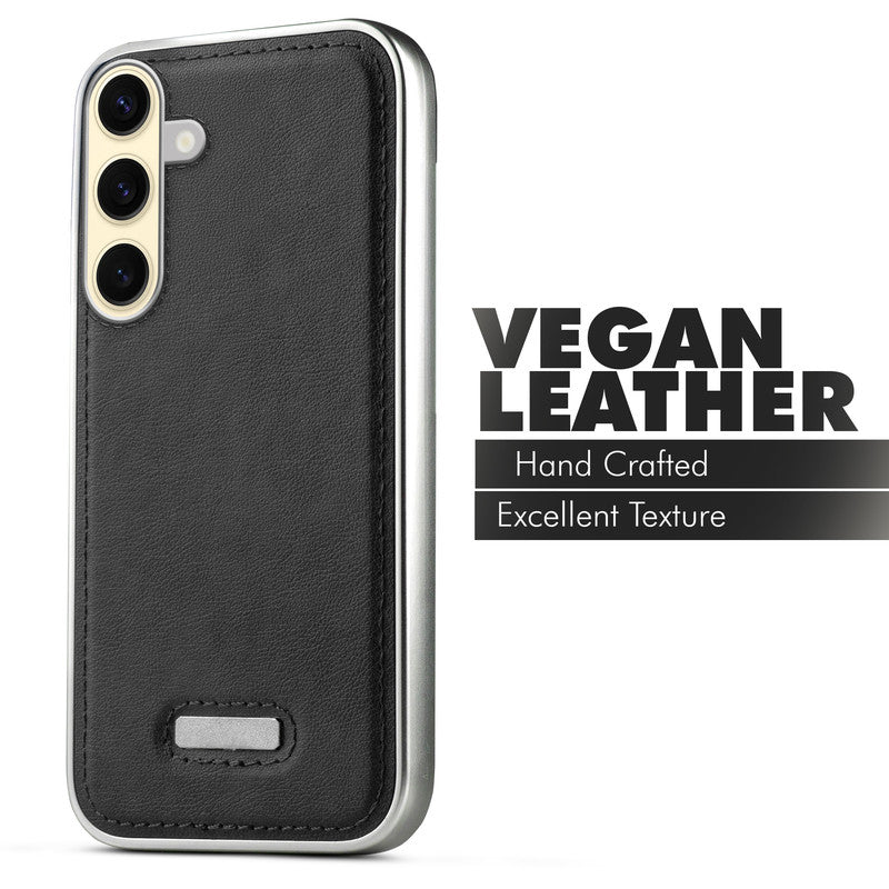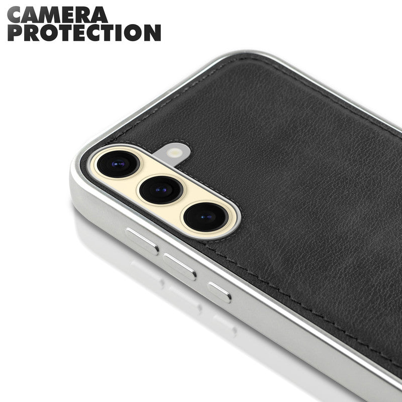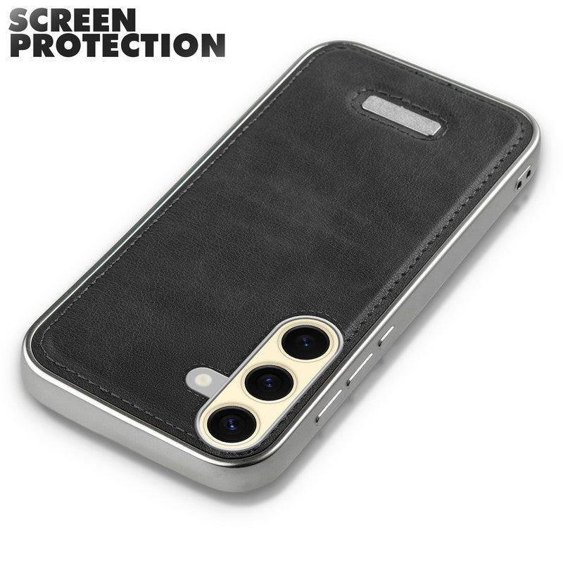 Sophisticated Leather Cover for Samsung S25 5G with Shiny Silver Edges, Stitched Back Design & Hard Shell Protection
