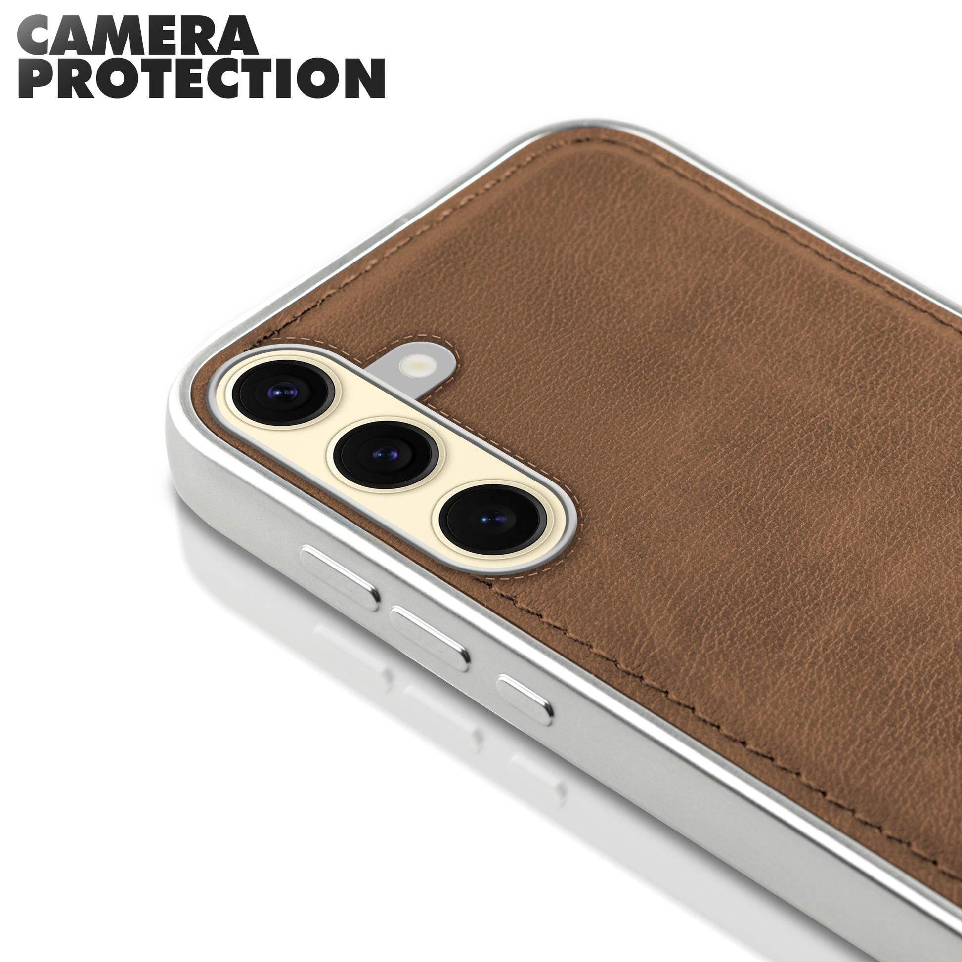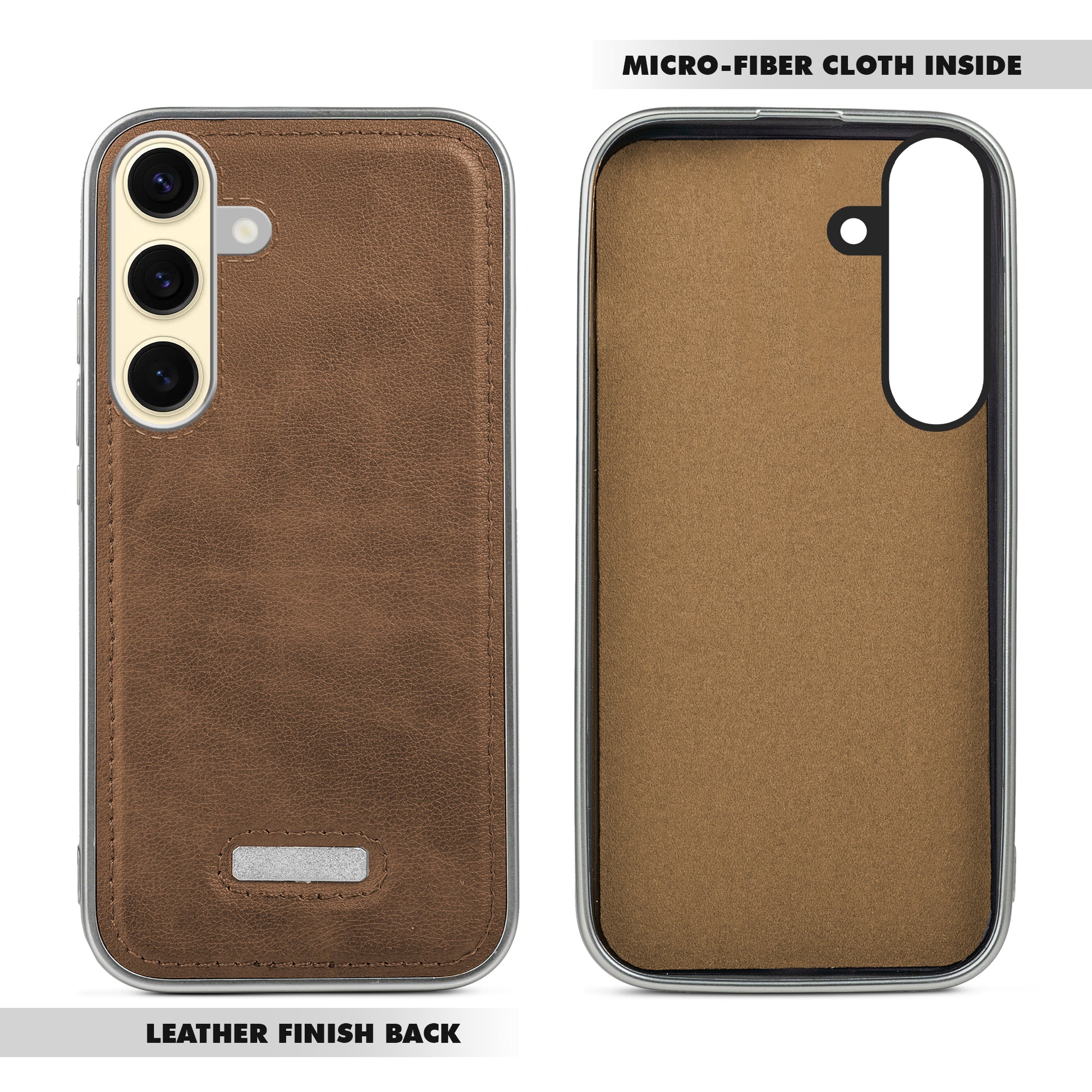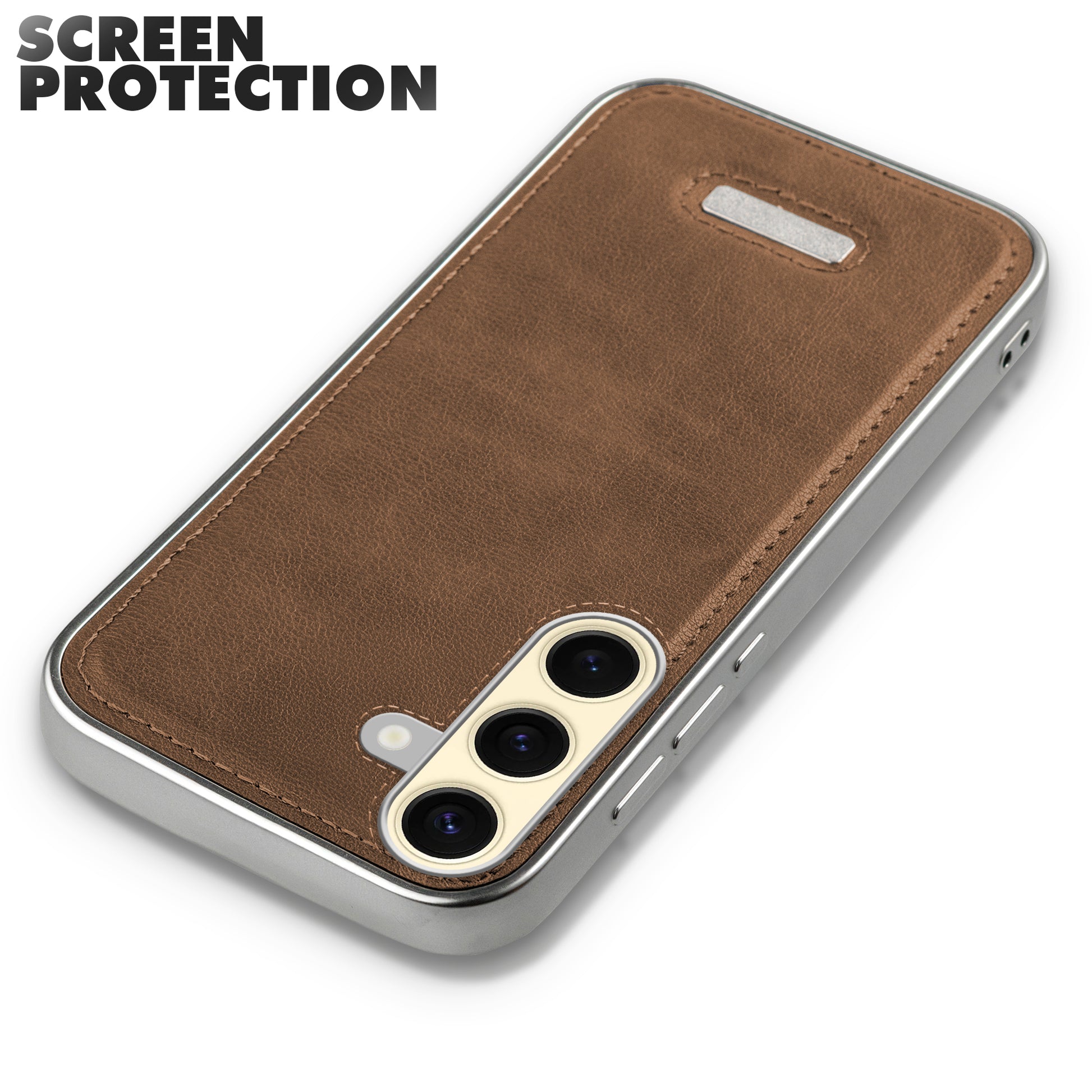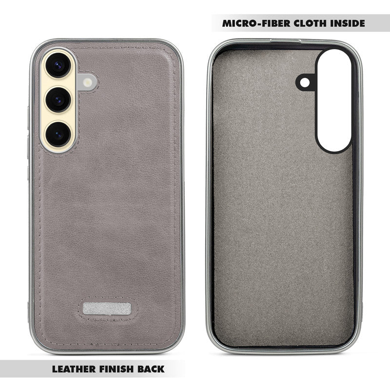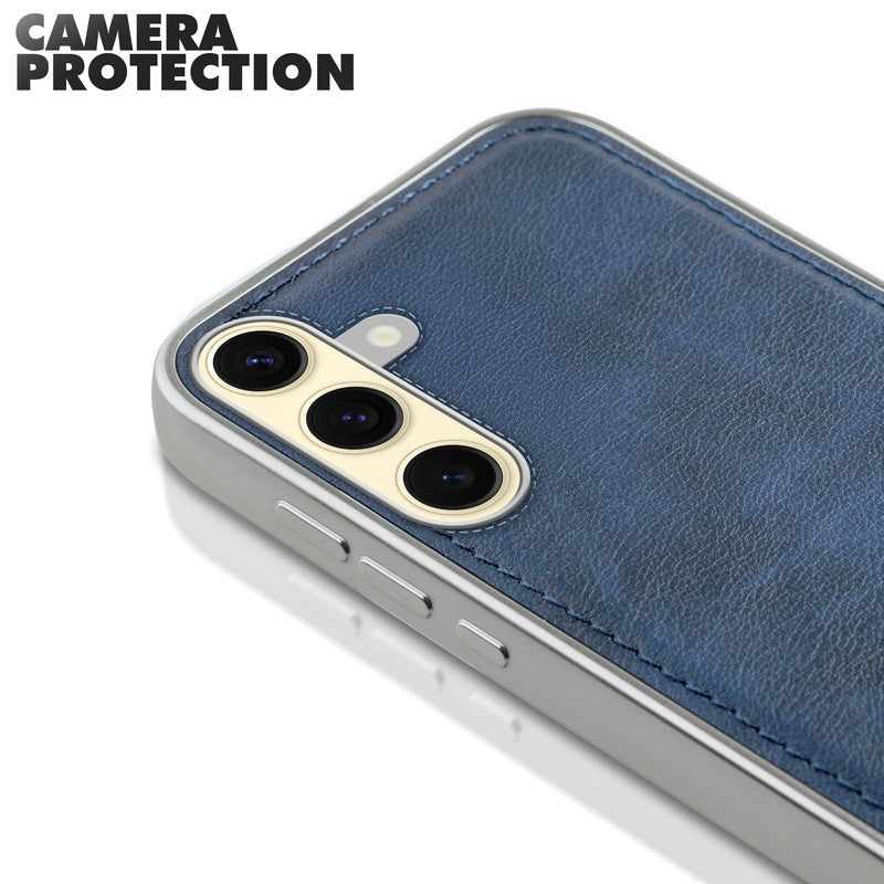 Sophisticated Leather Cover for Samsung S25 5G with Shiny Silver Edges, Stitched Back Design & Hard Shell Protection