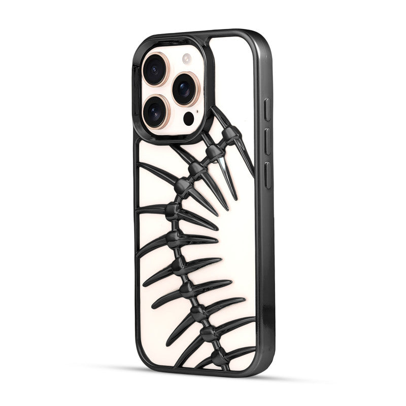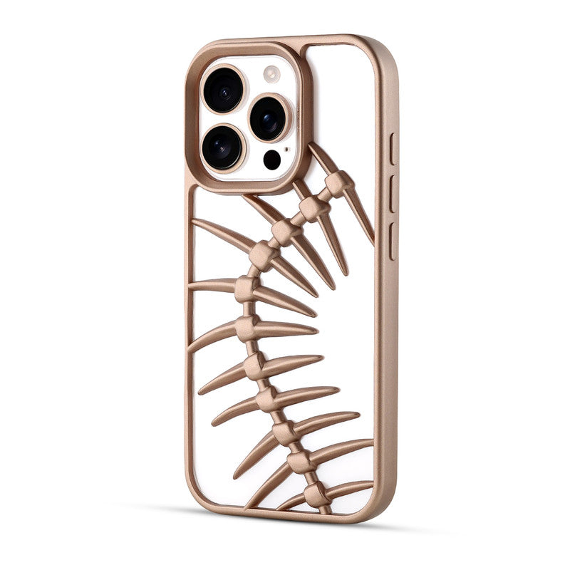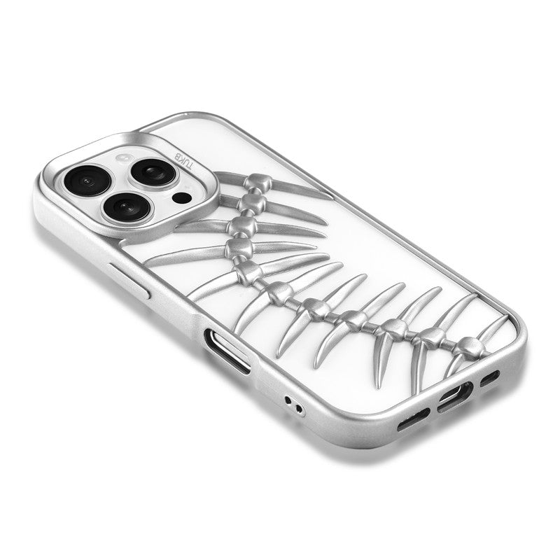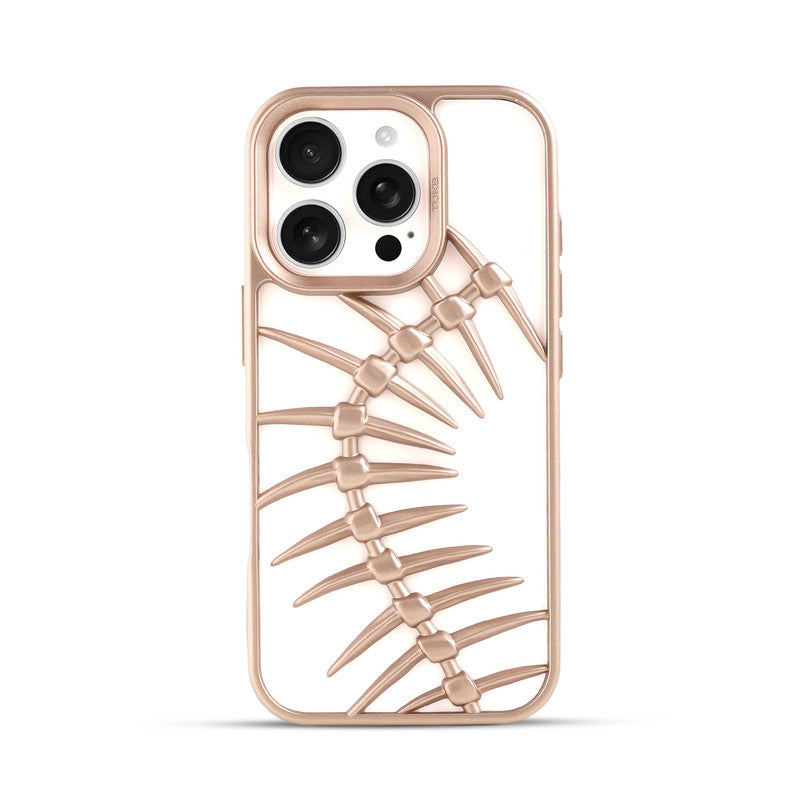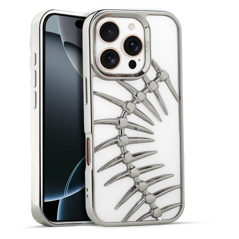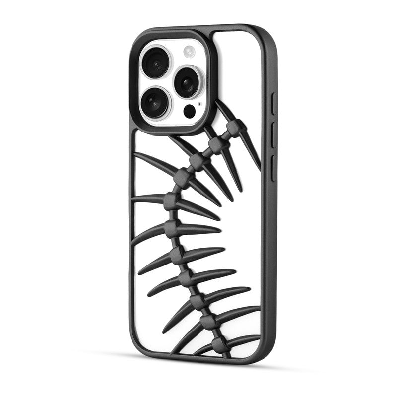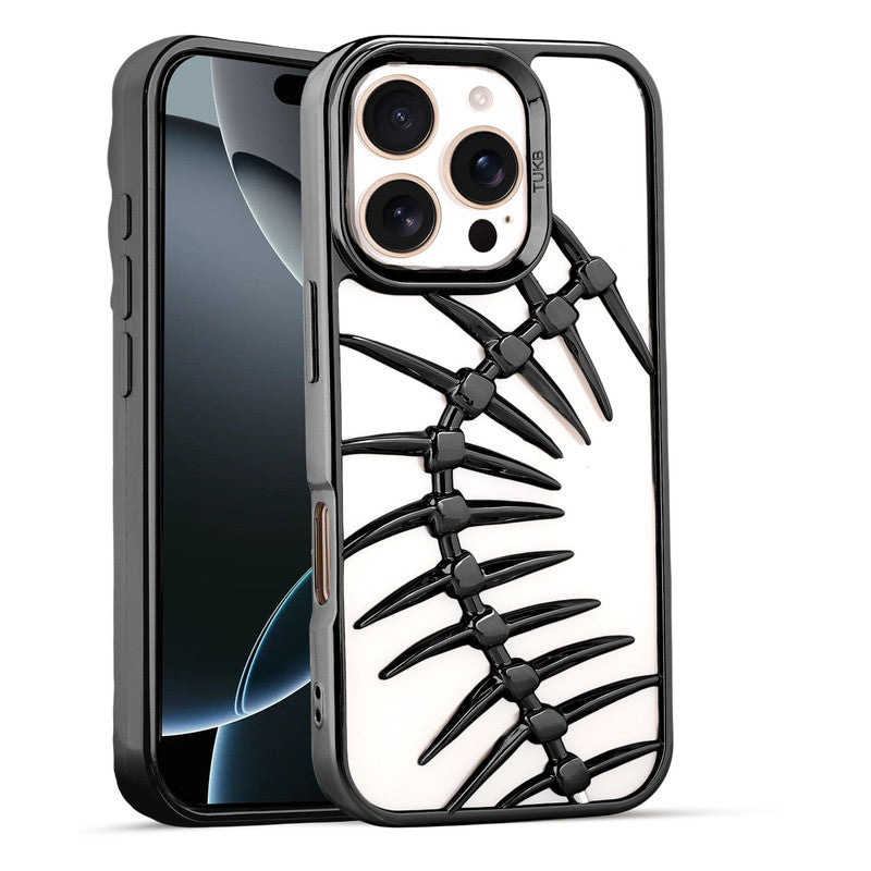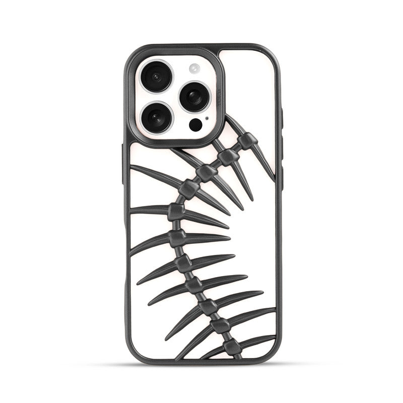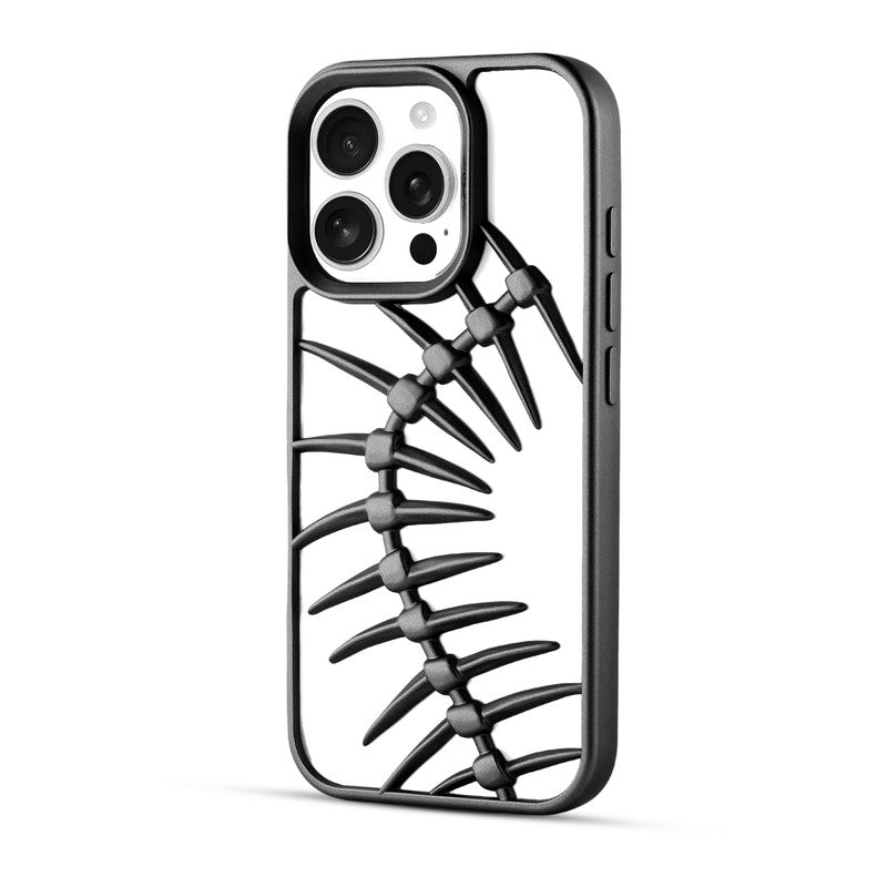 Spine Guard theme Fish Bone Textured Silicone Back Cover for Apple iphone 16 Pro Max