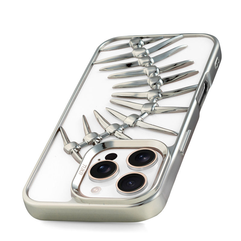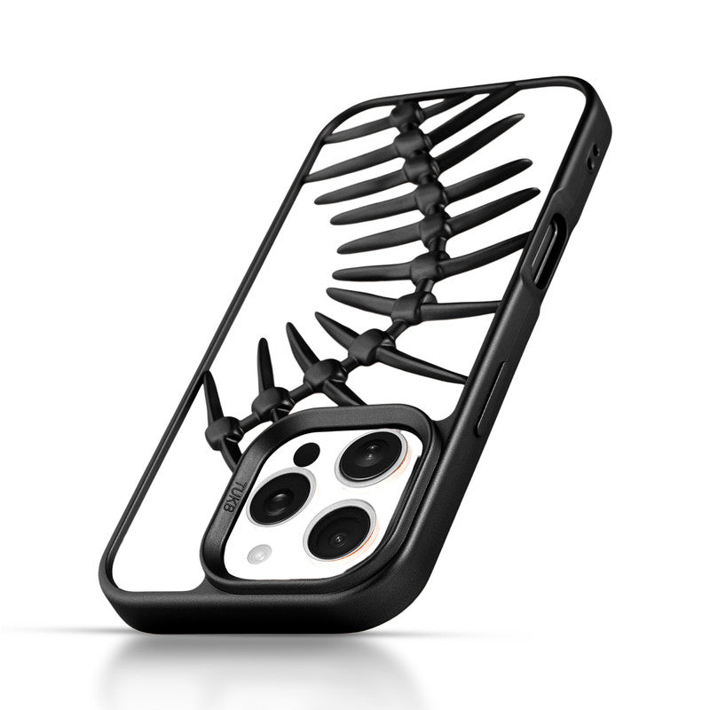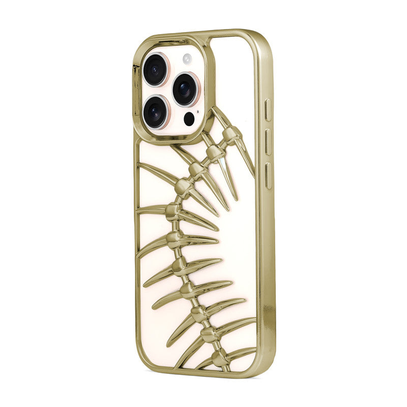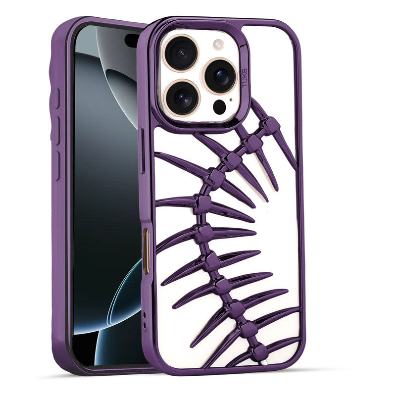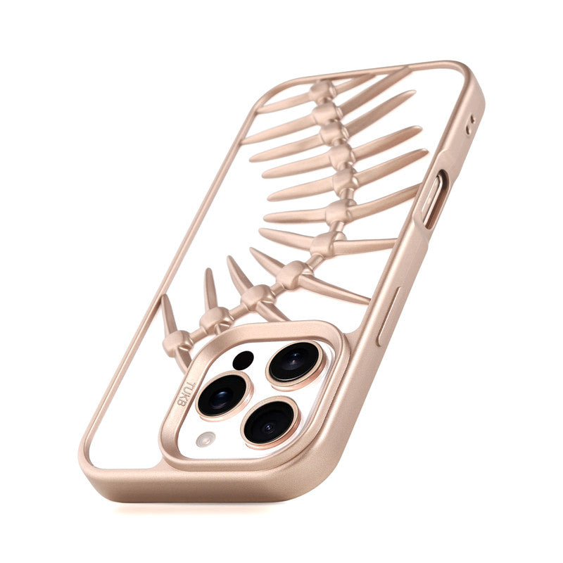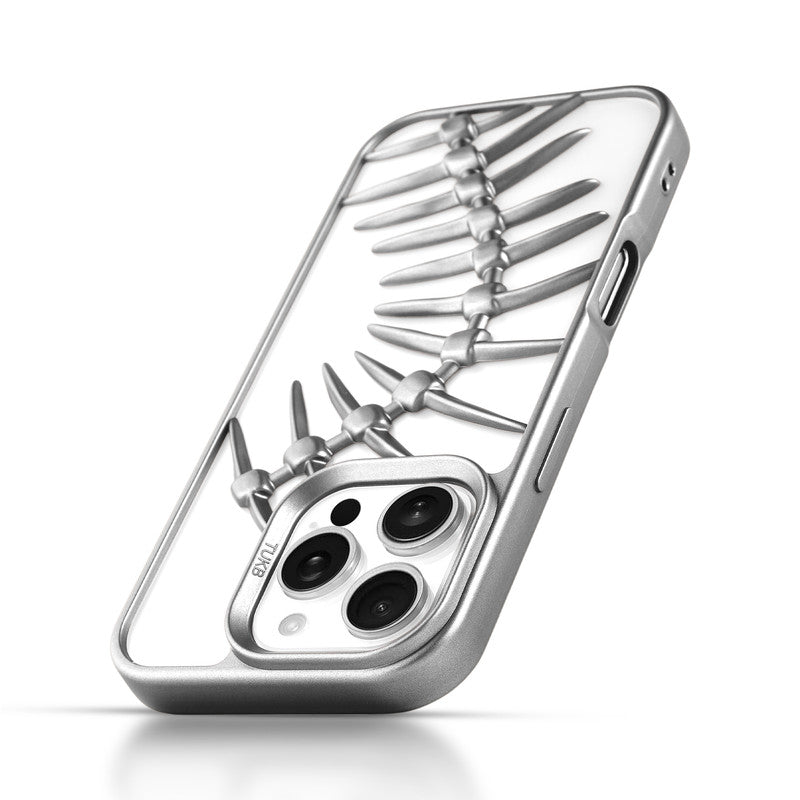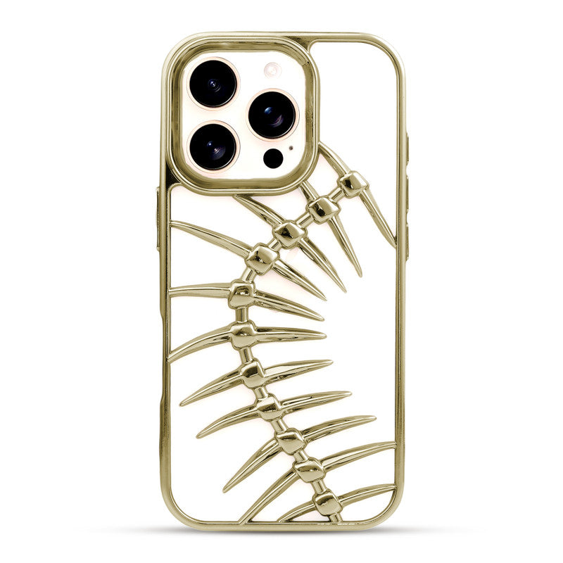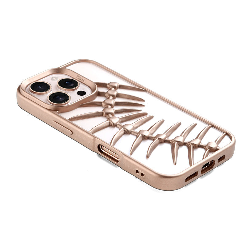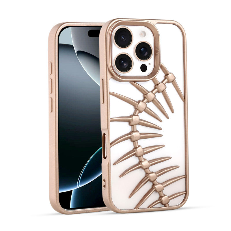 Spine Guard theme Fish Bone Textured Silicone Back Cover for Apple iphone 16 Pro Max