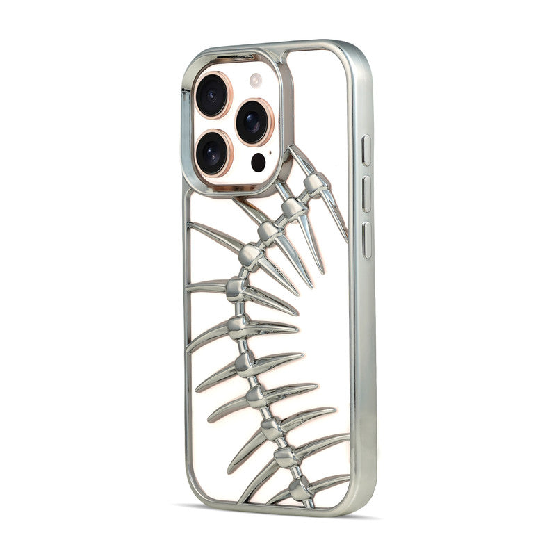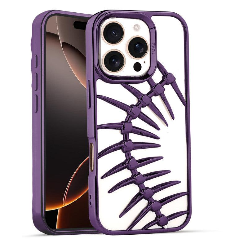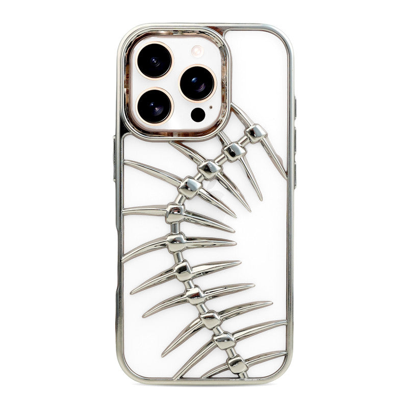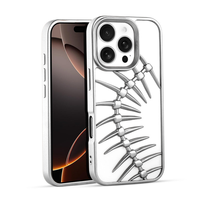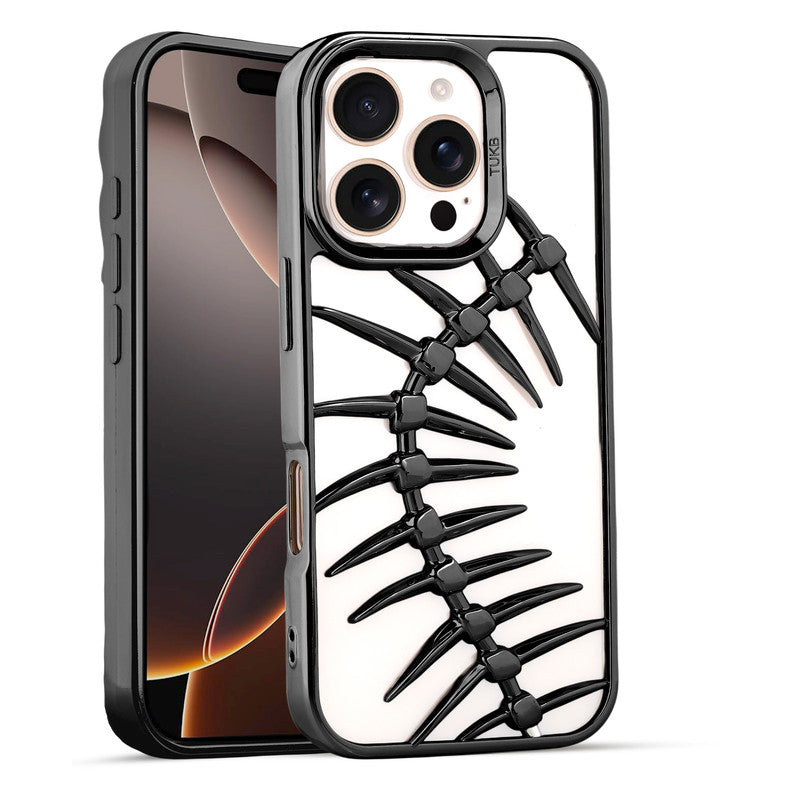 Spine Guard theme Fish Bone Textured Silicone Back Cover for Apple iPhone 16 Pro