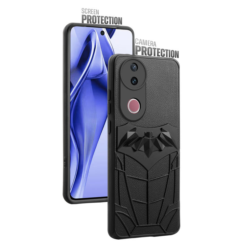 Textured Comic Hero Back Cover for Vivo V50e 5G , Soft Silicone Back Case with Shiny Bat Design & Raised Camera Edges