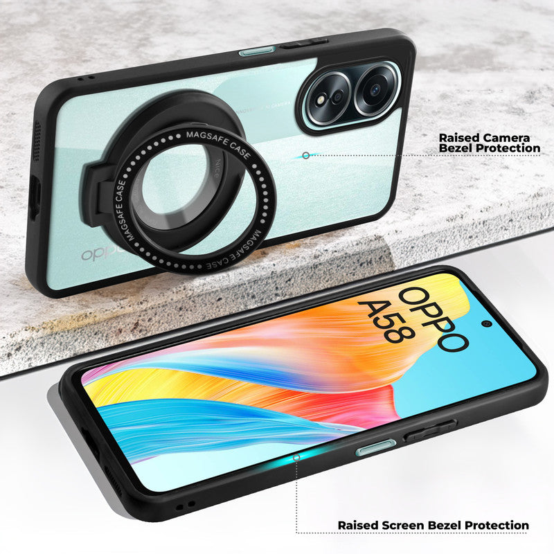 Soft Frame Clear Case Ring Holder Kickstand For Oppo A58 4G