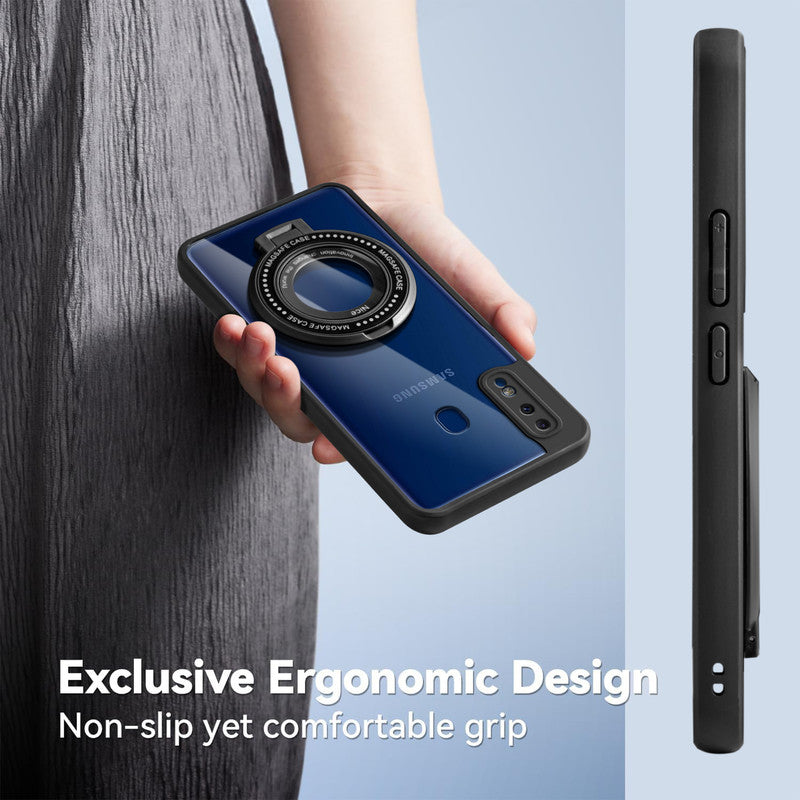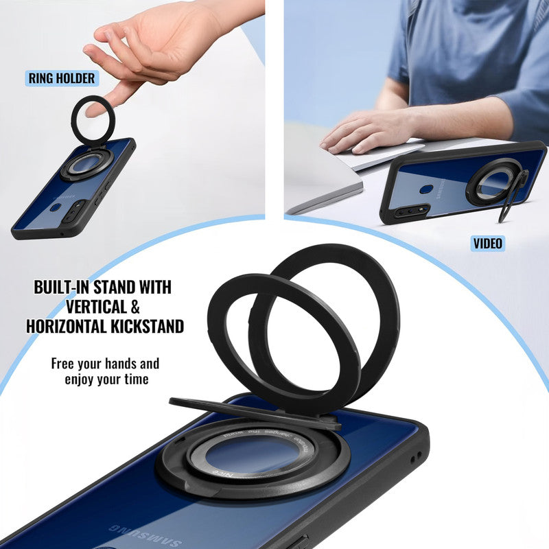 Soft Frame Clear Case Ring Holder Kickstand For Samsung A20